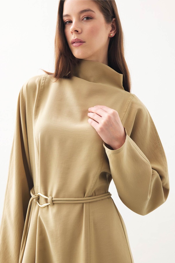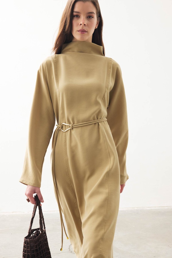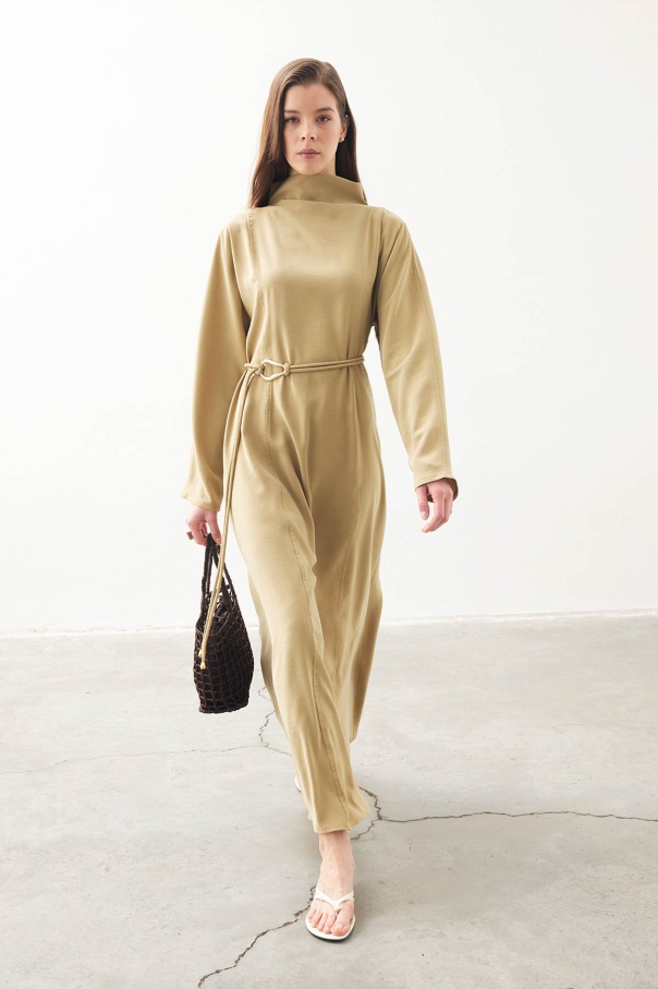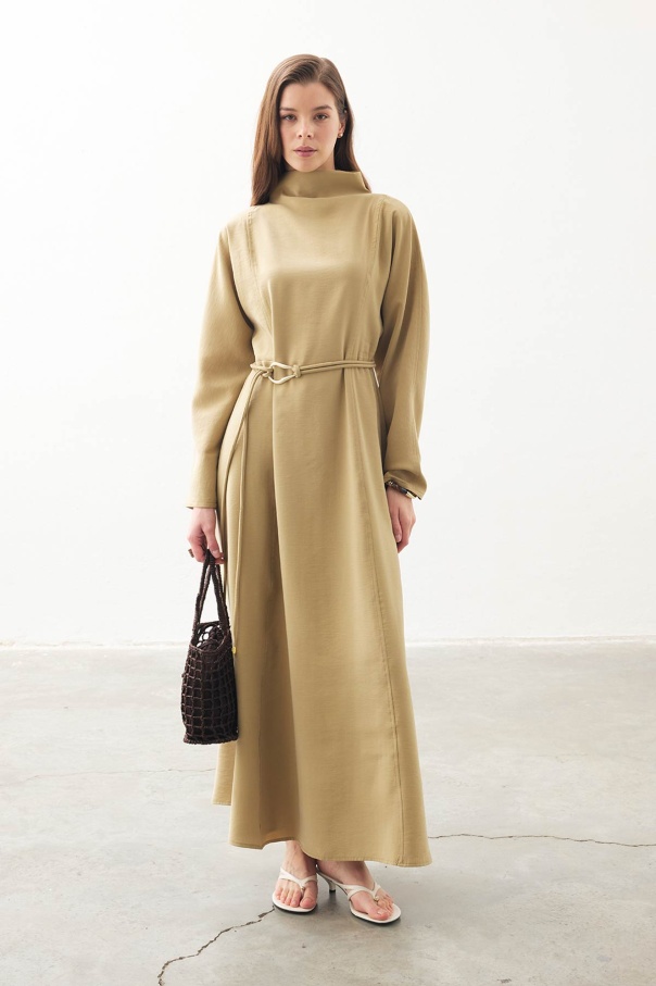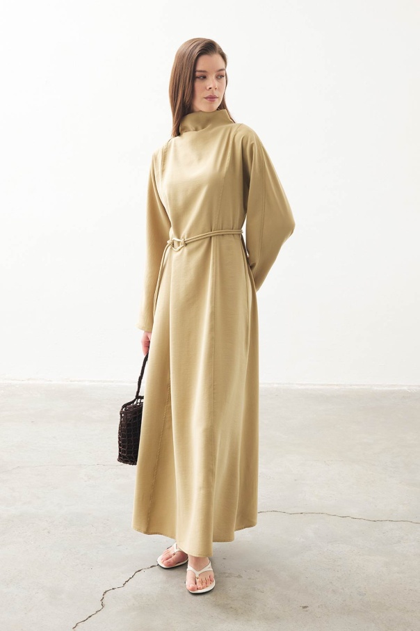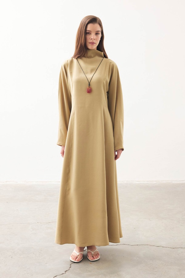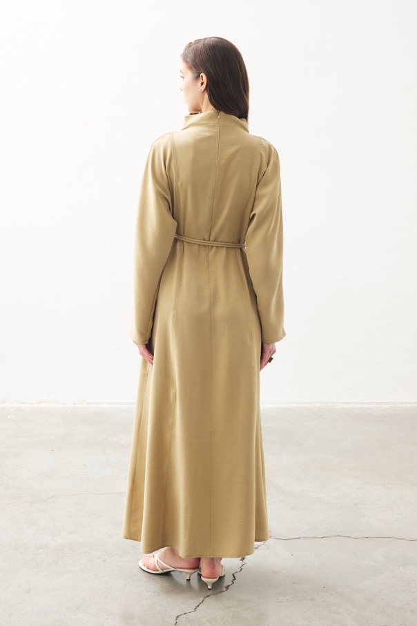 Gold Aksesuar Detaylı Uzun Safran Elbise