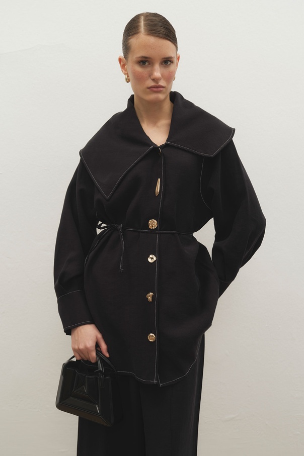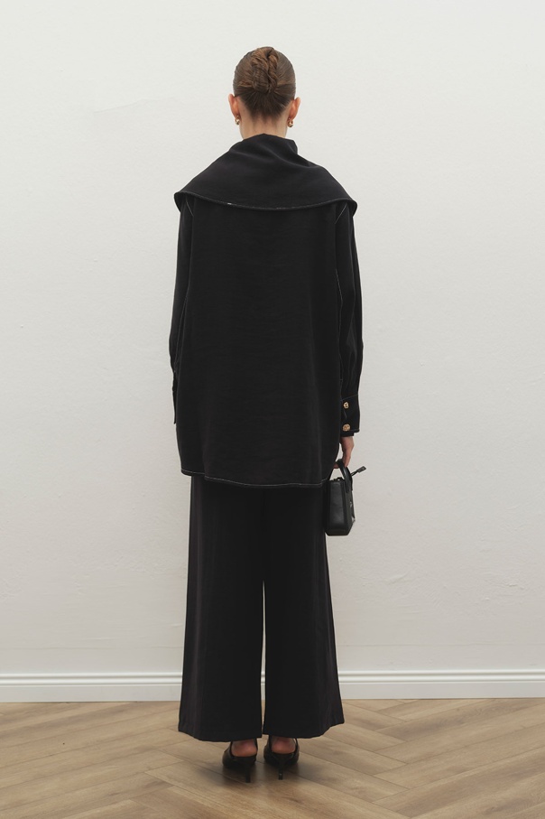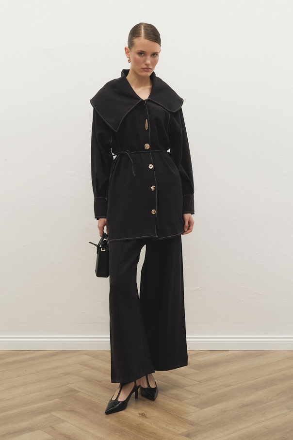Gold Aksesuarlı Lilyum Siyah Ceket Takım