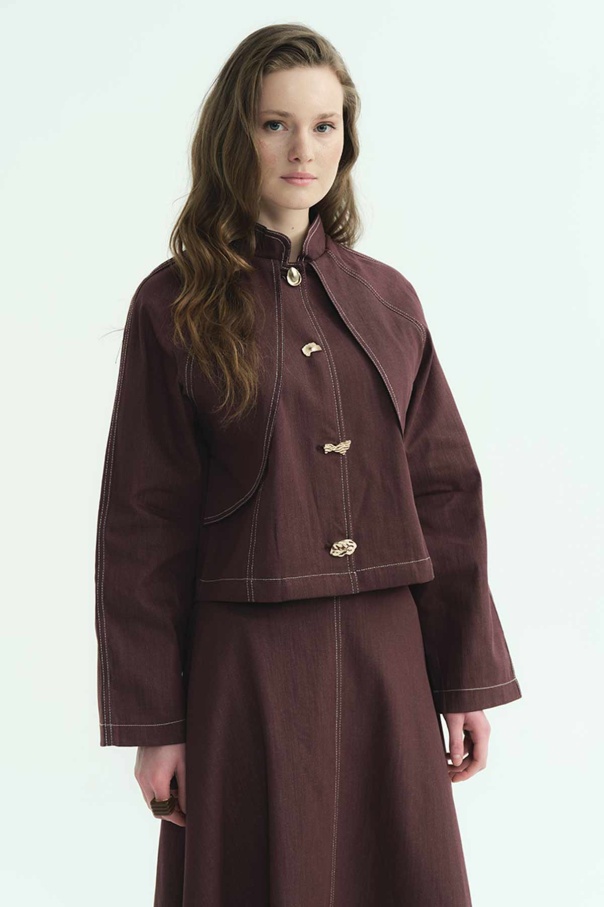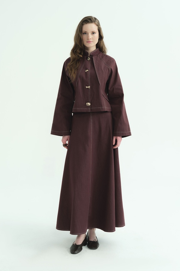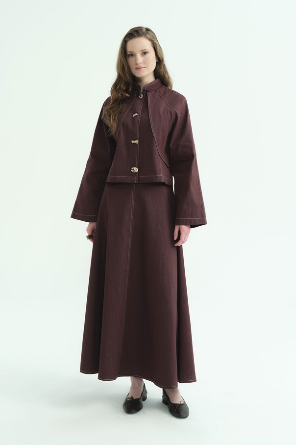 Gold Düğme Detaylı Denim Burganya Etekli Takım