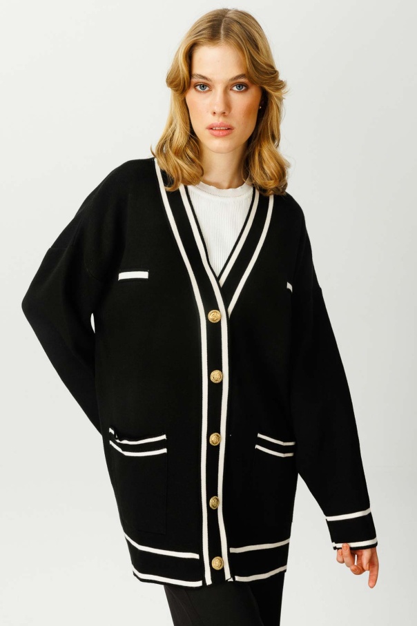 Gold Düğme Detaylı Triko Hırka - Siyah