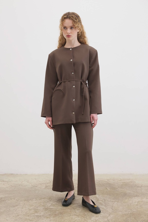 Gold Düğme Detaylı Vizon Pantolon Takım
