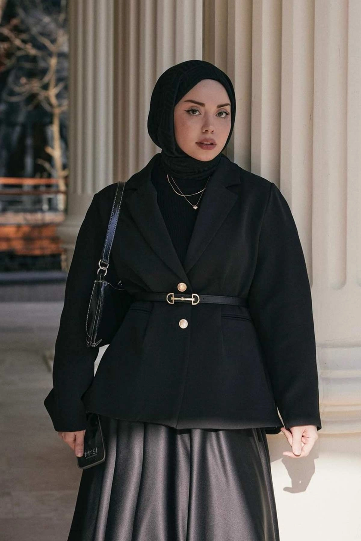 Gold Düğmeli Blazer Siyah Ceket