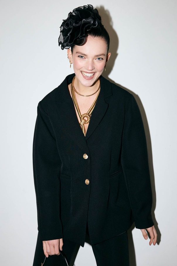 Model Ölçüleri: Boy: 1.72cm, Göğüs: 76cm, Bel: 62cm, Basen: 90cm