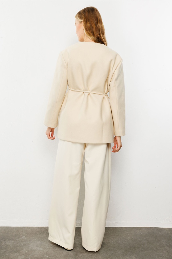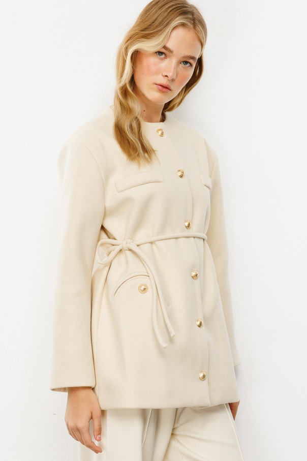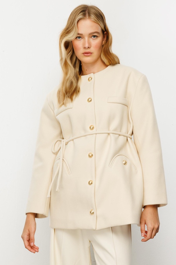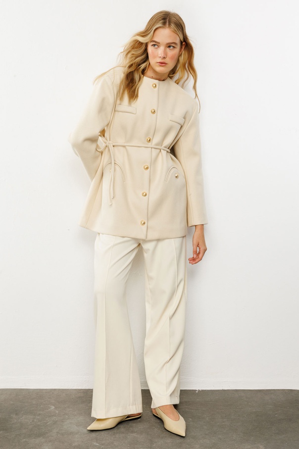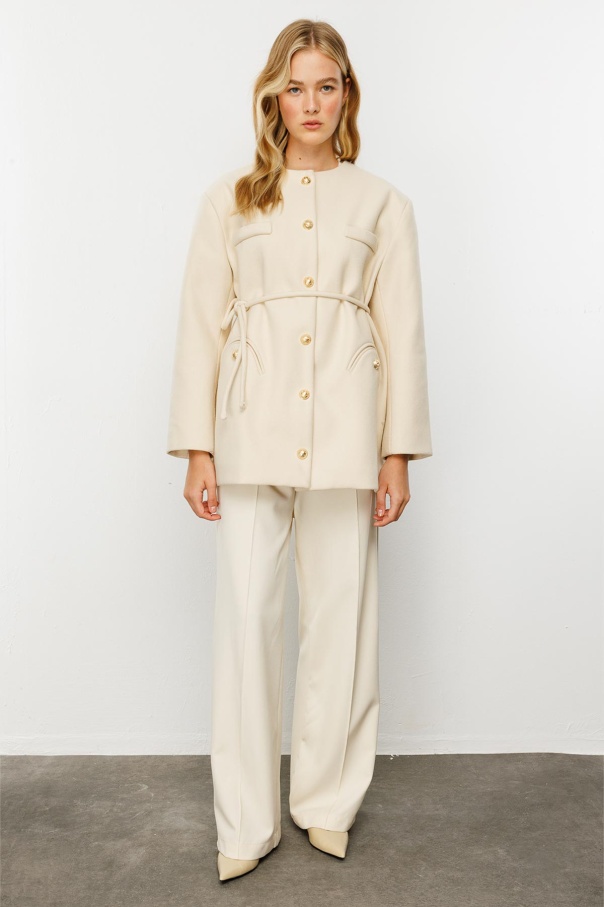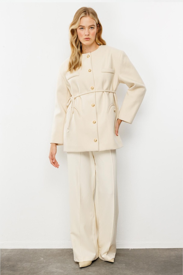 Gold Metal Düğmeli Kaşe Krem Blazer Ceket