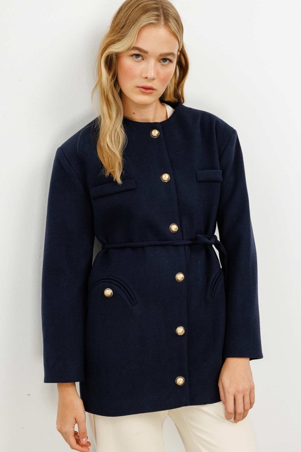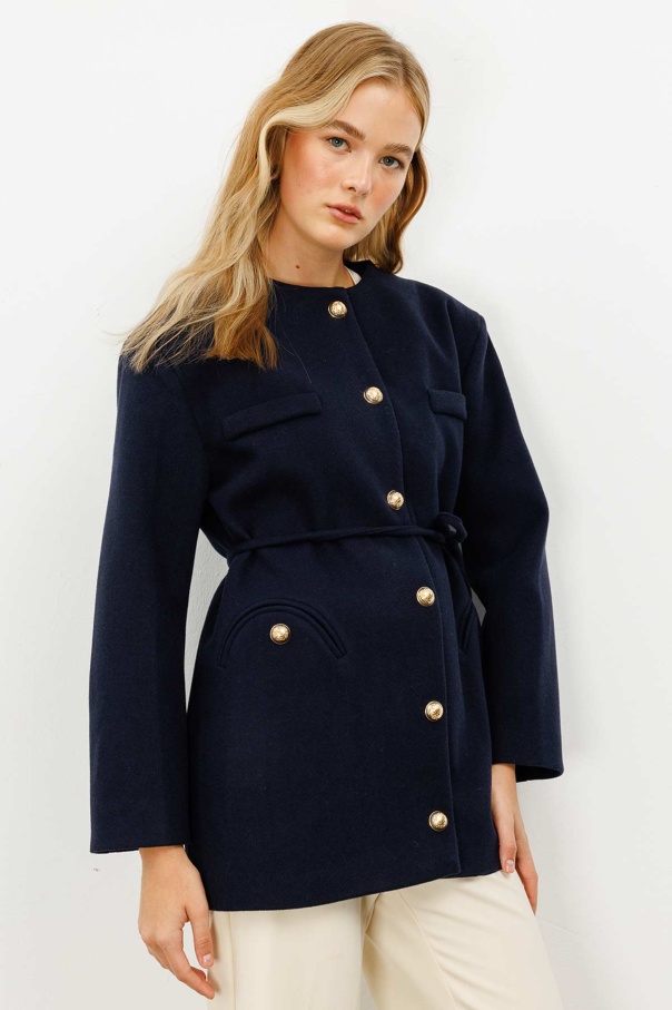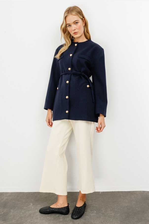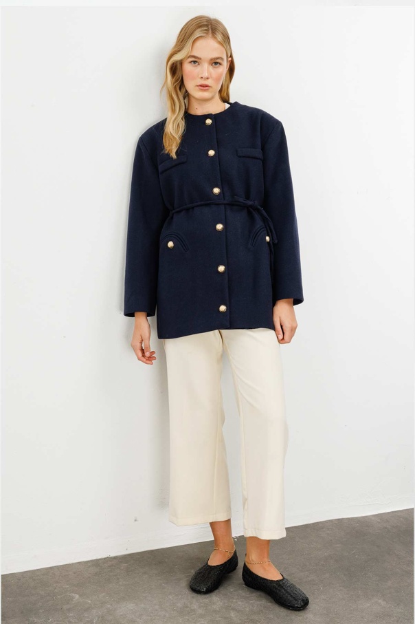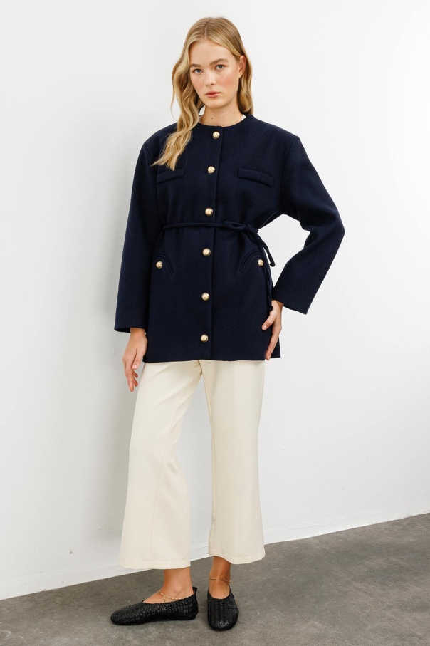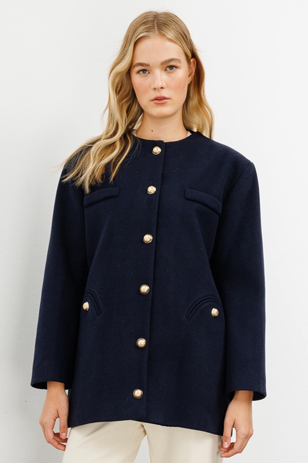 Gold Metal Düğmeli Kaşe Lacivert Blazer Ceket