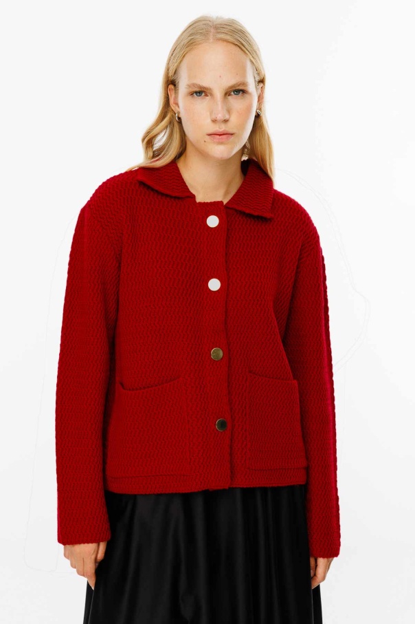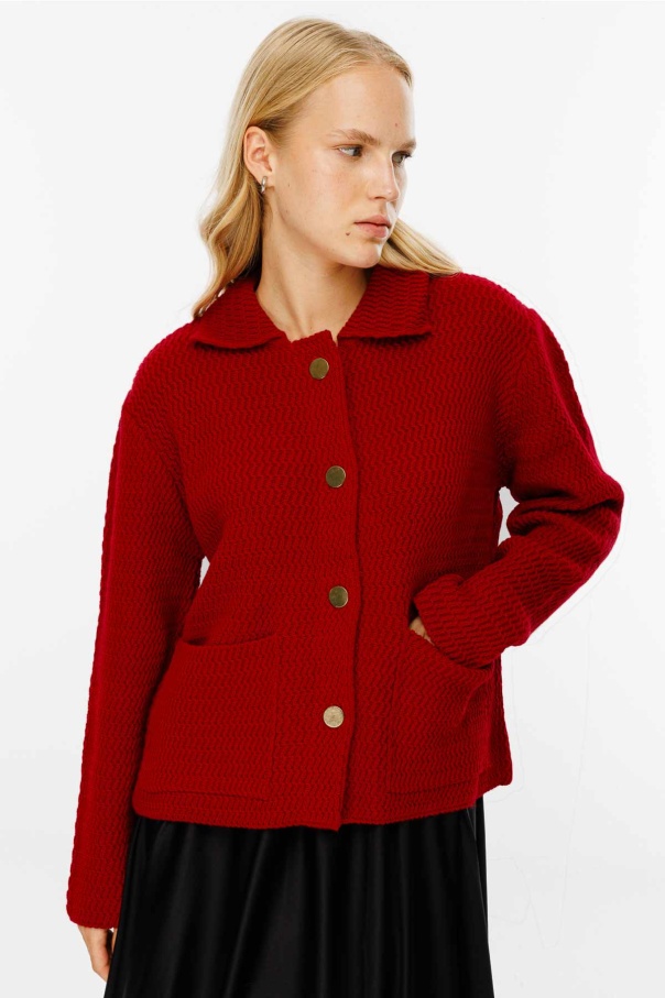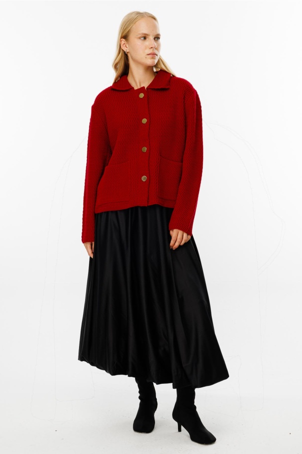 Gömlek Yaka Düğmeli Kırmızı Hırka
