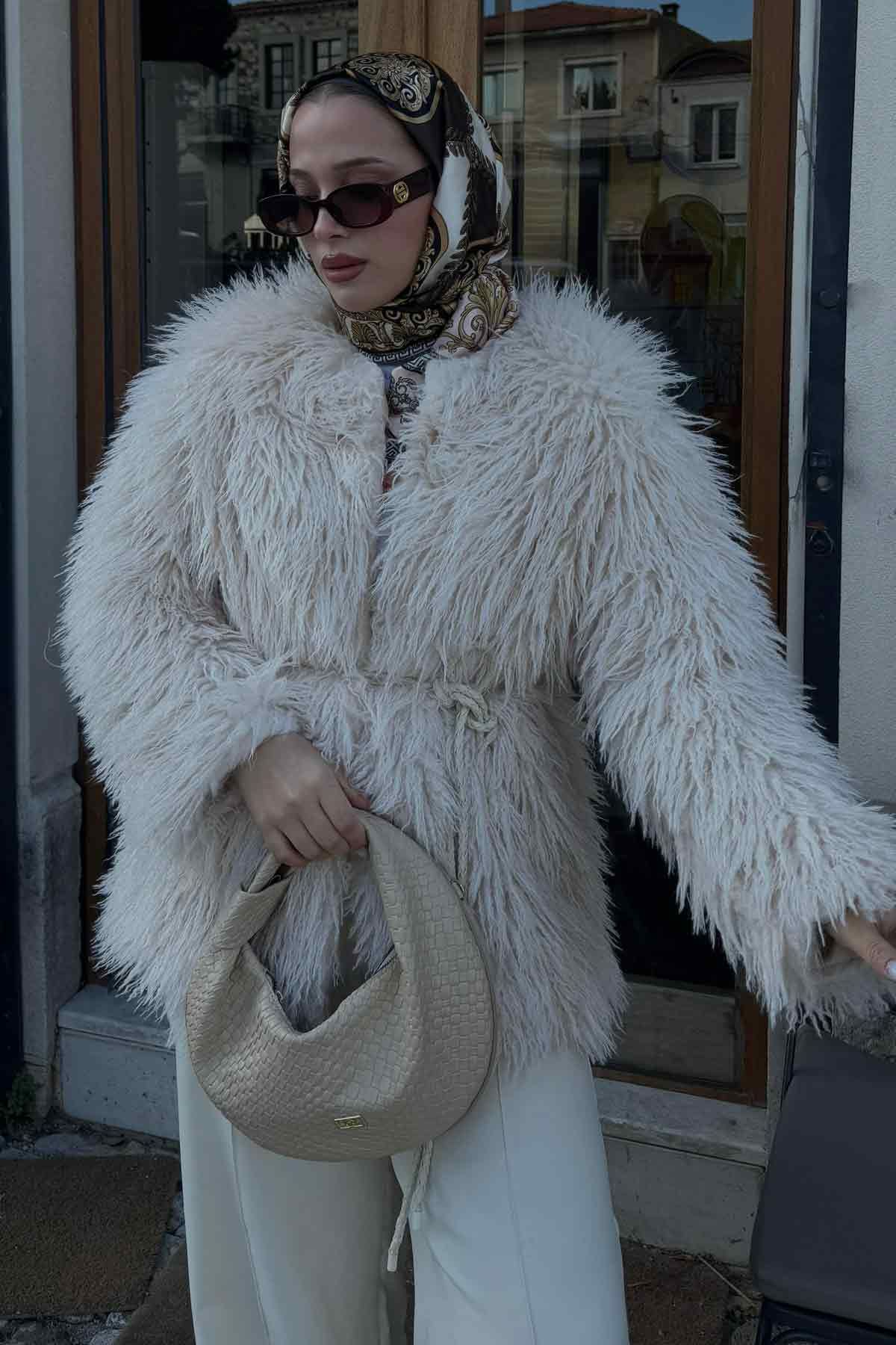 Örgü Motifli İp Kordon Vizon Deri Kemer