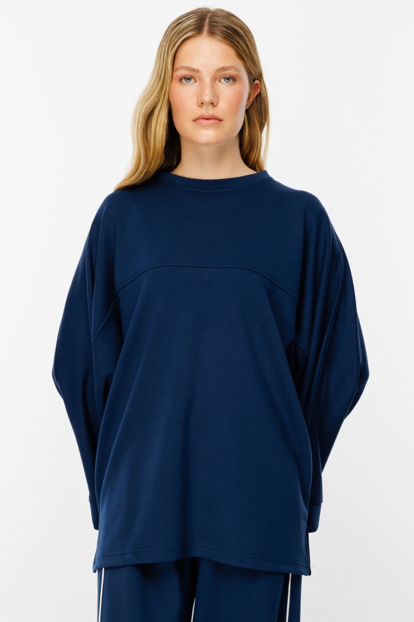 İspanyol Kol Pamuklu Lacivert Sweatshirt
