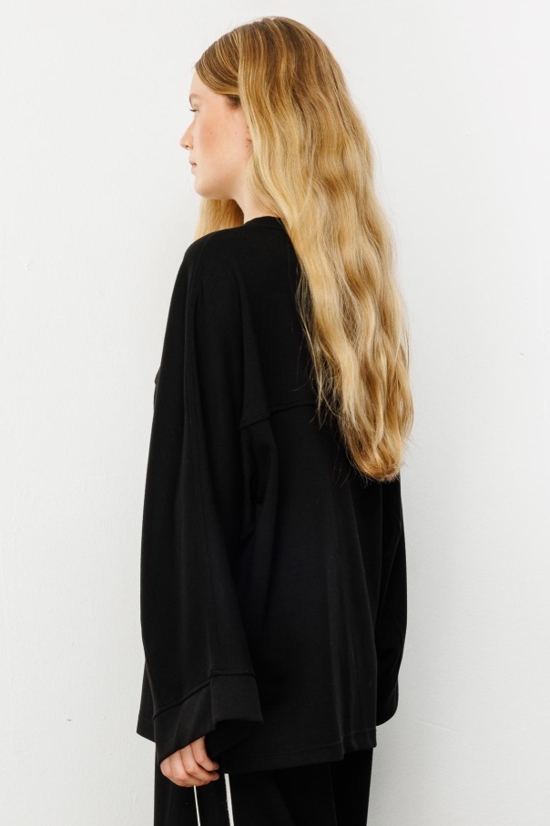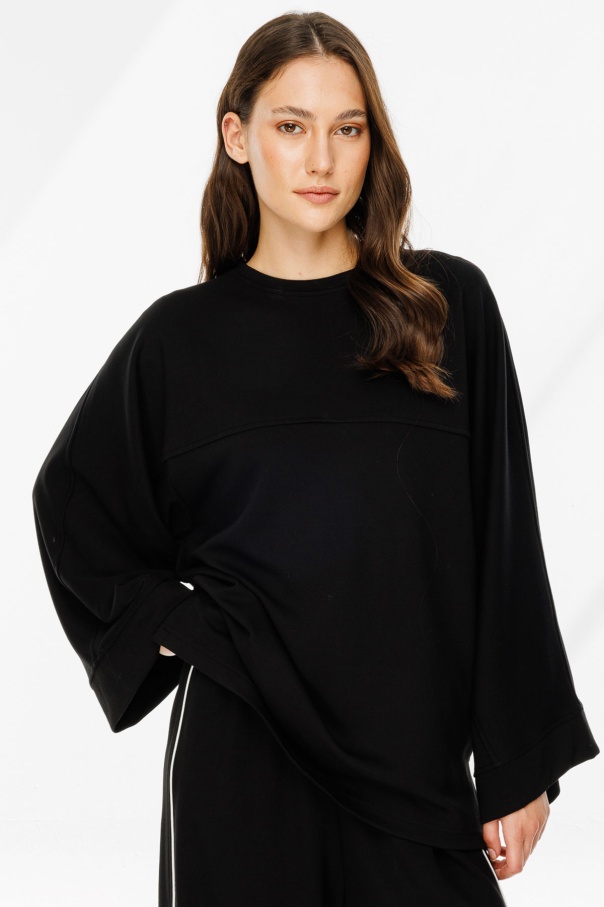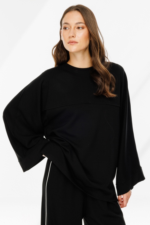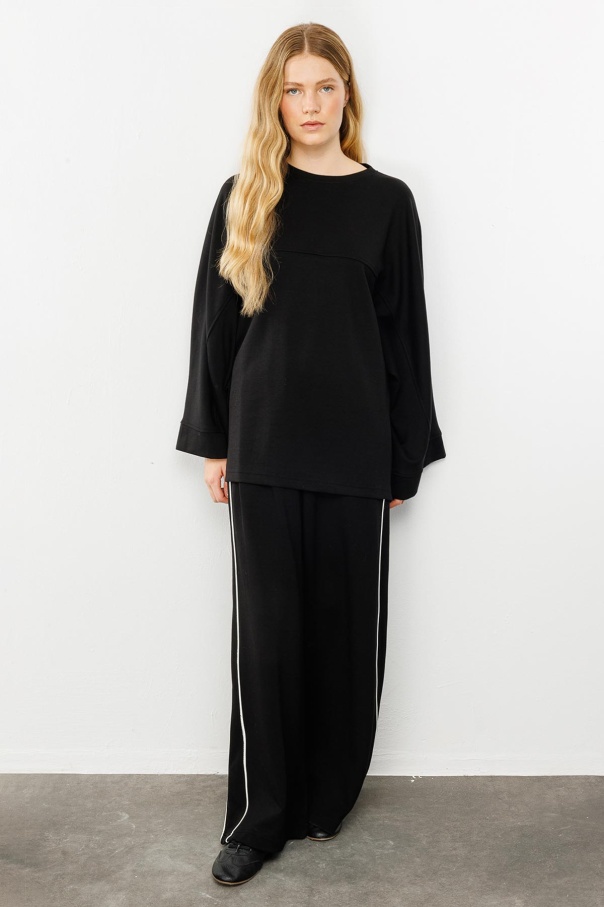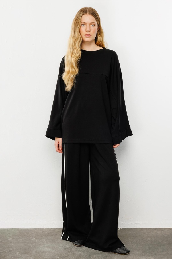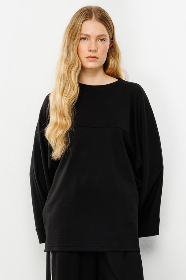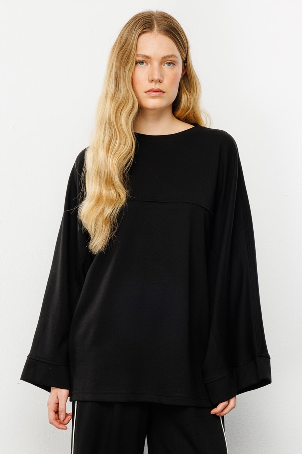 İspanyol Kol Pamuklu Siyah Sweatshirt