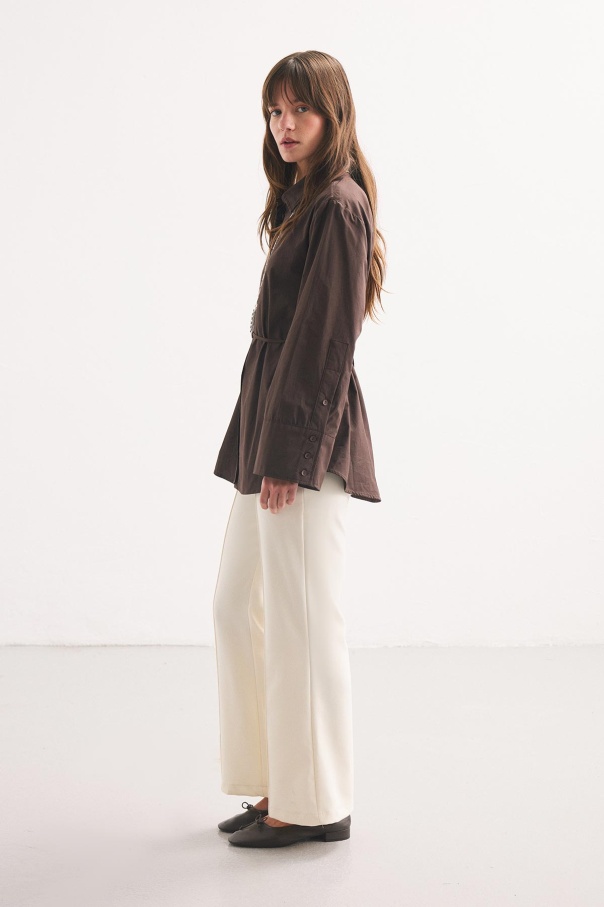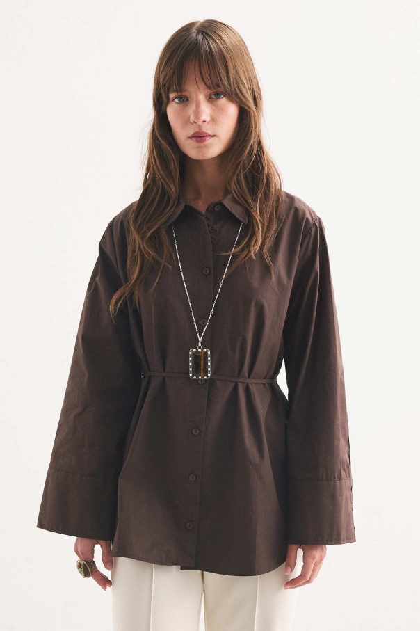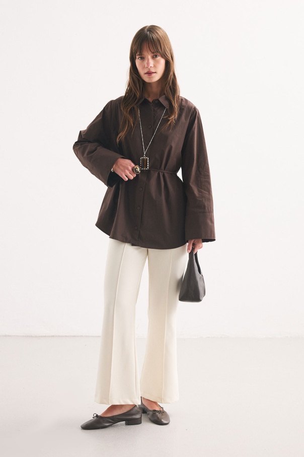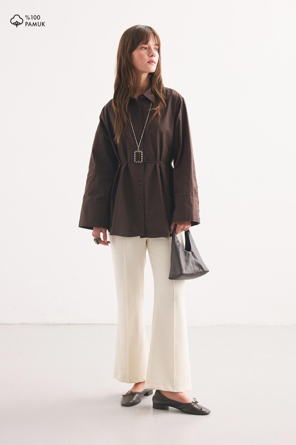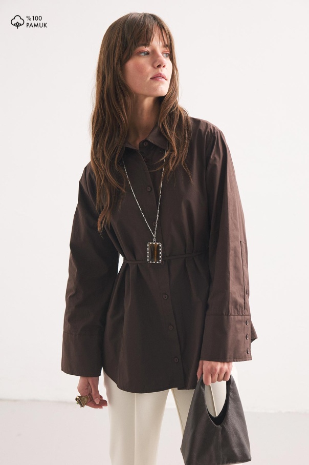Kalın Manşetli Kahve Gömlek