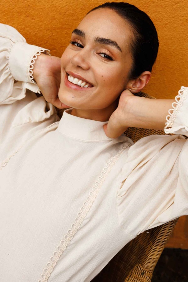 Model Ölçüleri: Boy: 1.74cm, Göğüs: 75cm, Bel: 58cm, Basen: 86cm