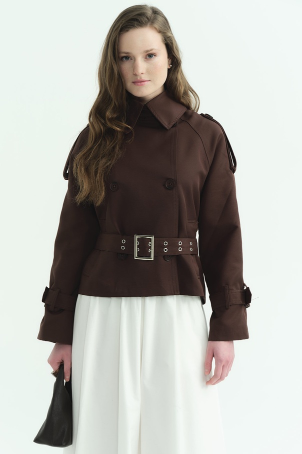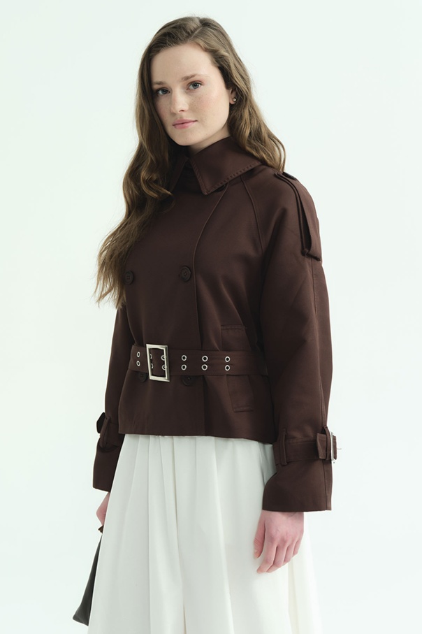 Kemerli Kısa Acı Kahve Trençkot