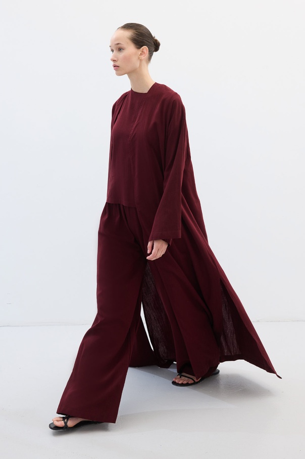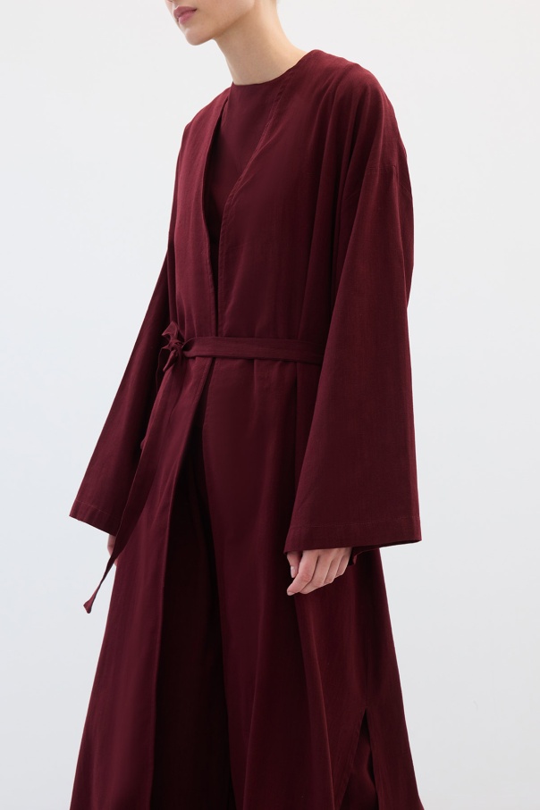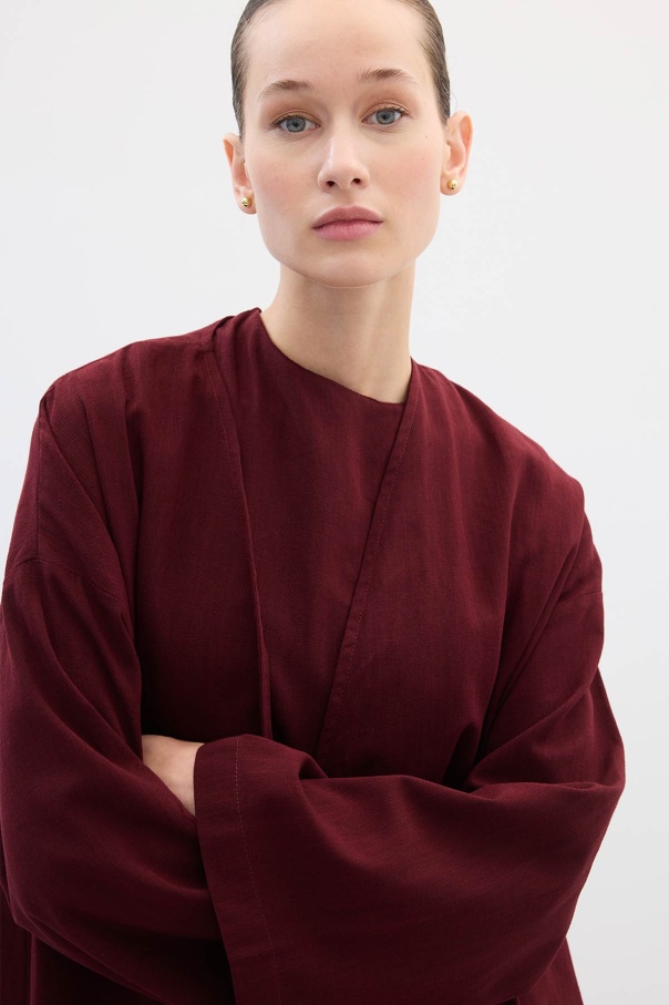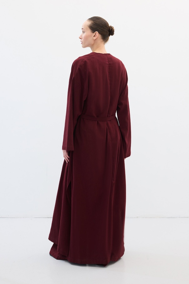 Kemerli Uzun Kimono Bordo Pantolon Takım