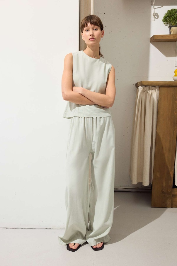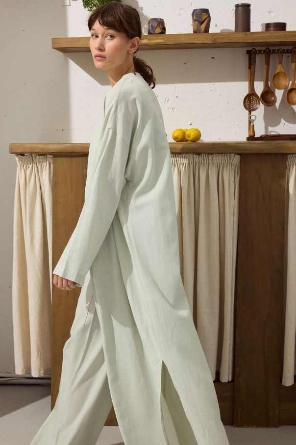 Kemerli Uzun Kimono Mint Yeşili Pantolon Takım