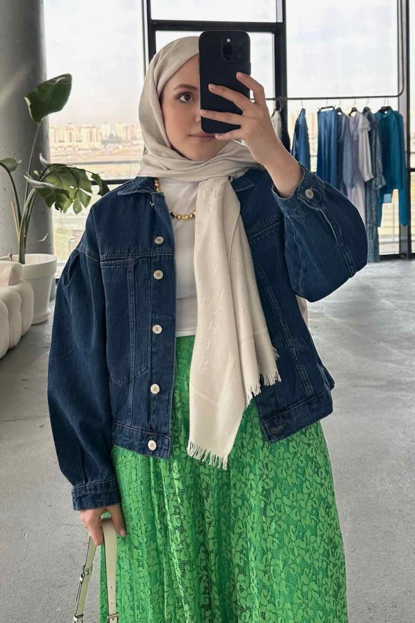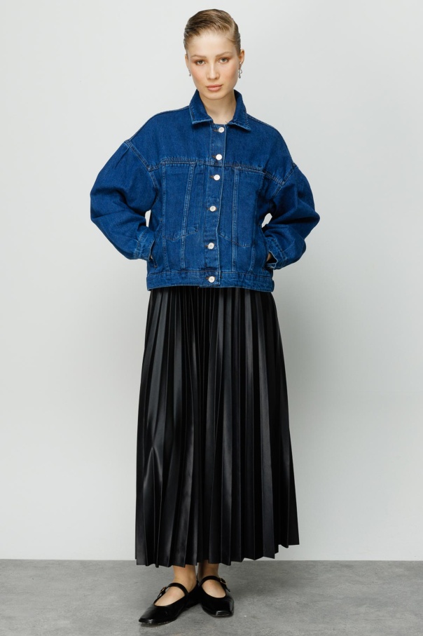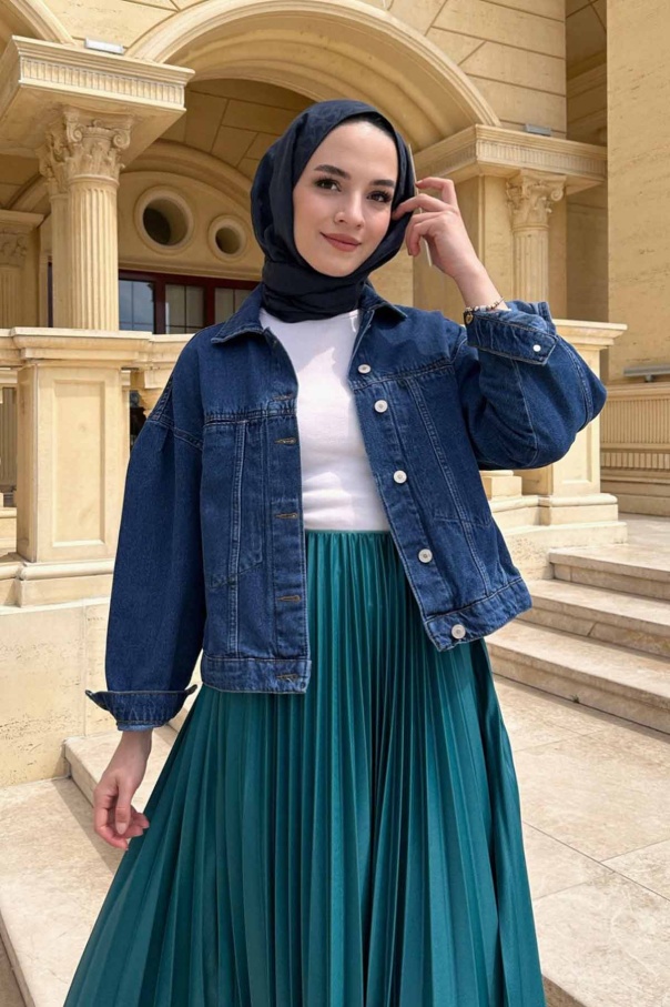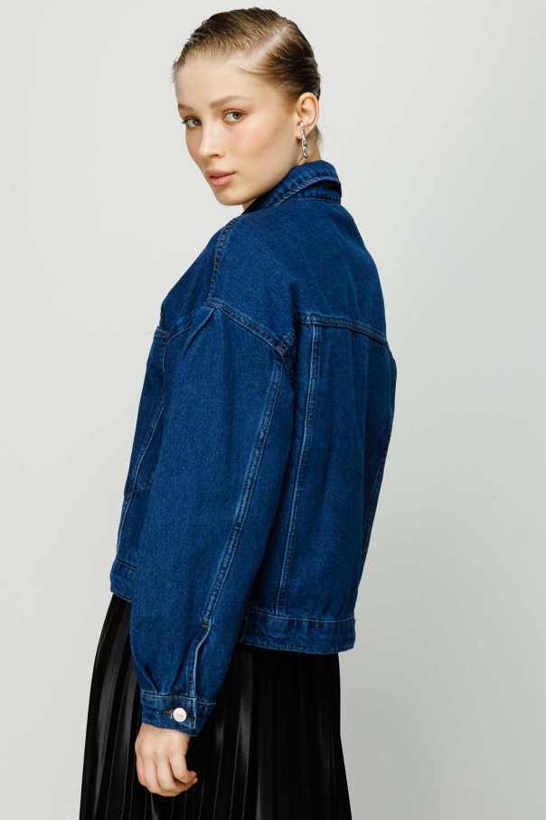 Kenarları Dikişsiz Kot Ceket - Koyu Mavi