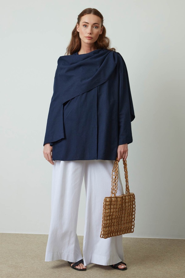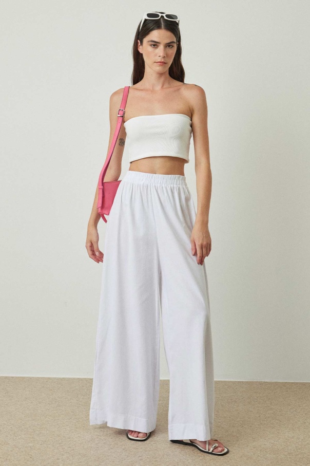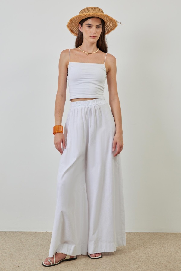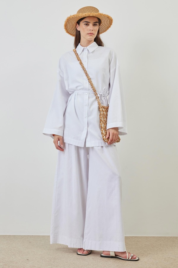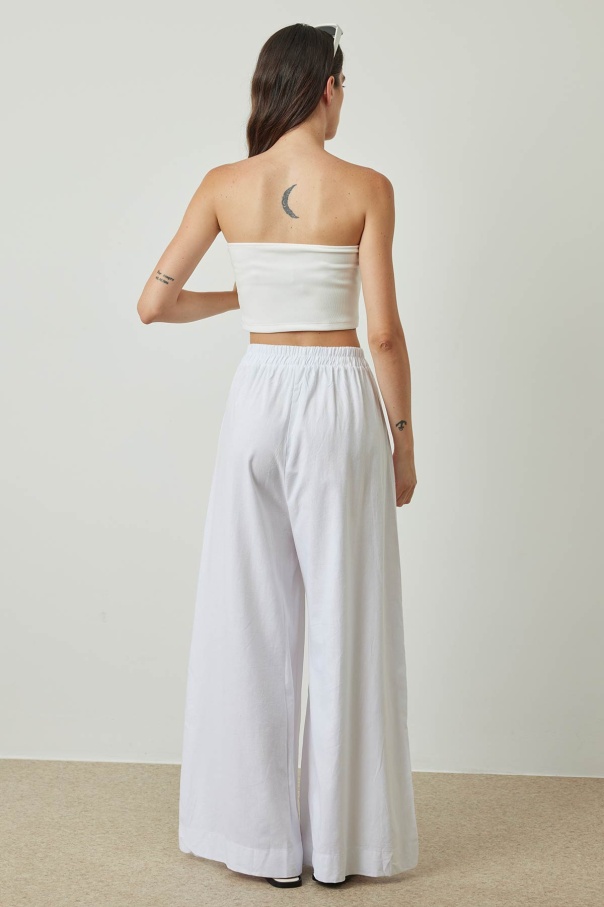Keten Bol Paça Beyaz Pantolon