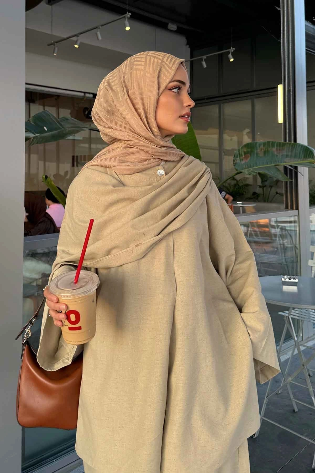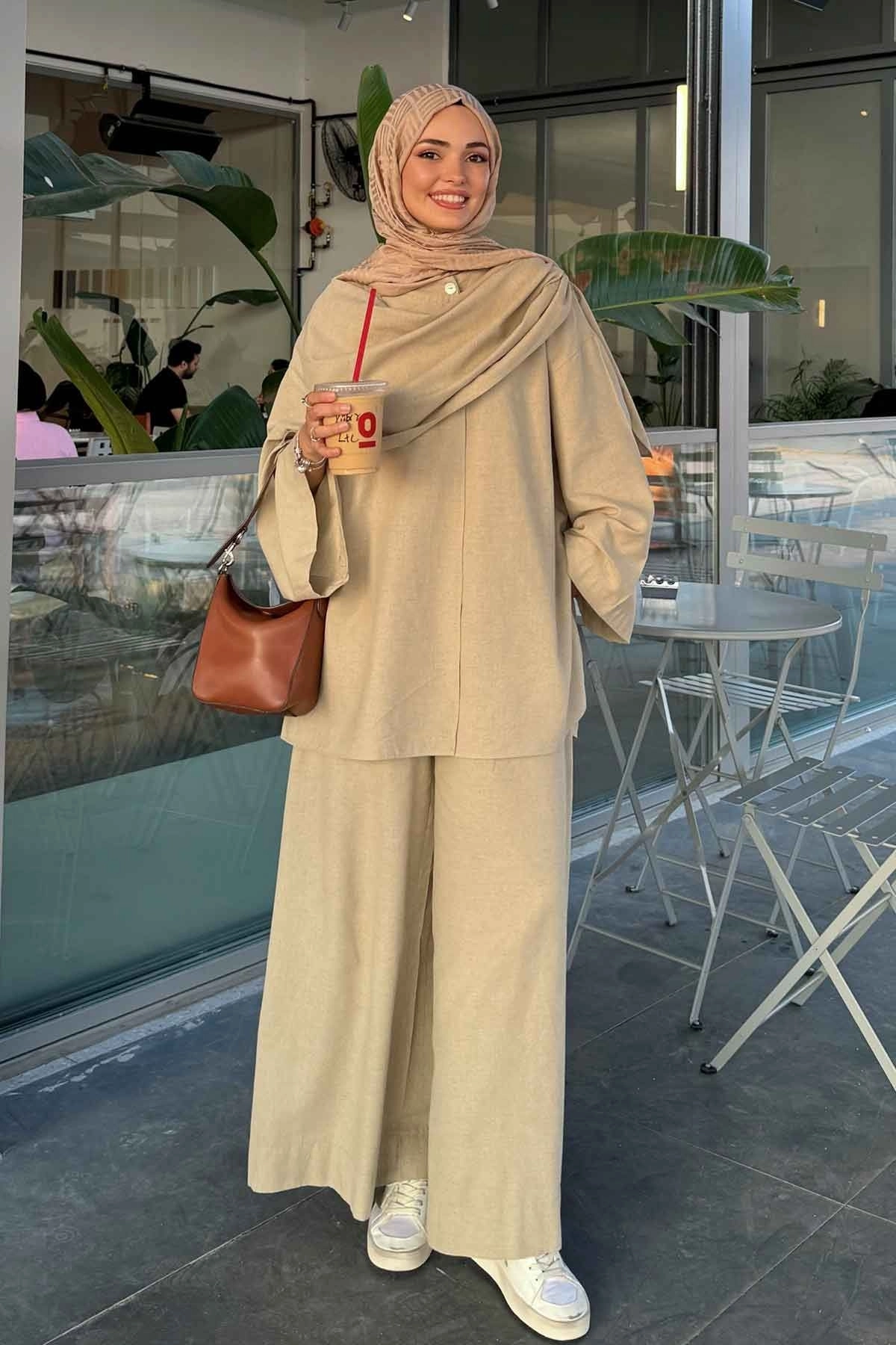 Keten Bol Paça Vizon Pantolon