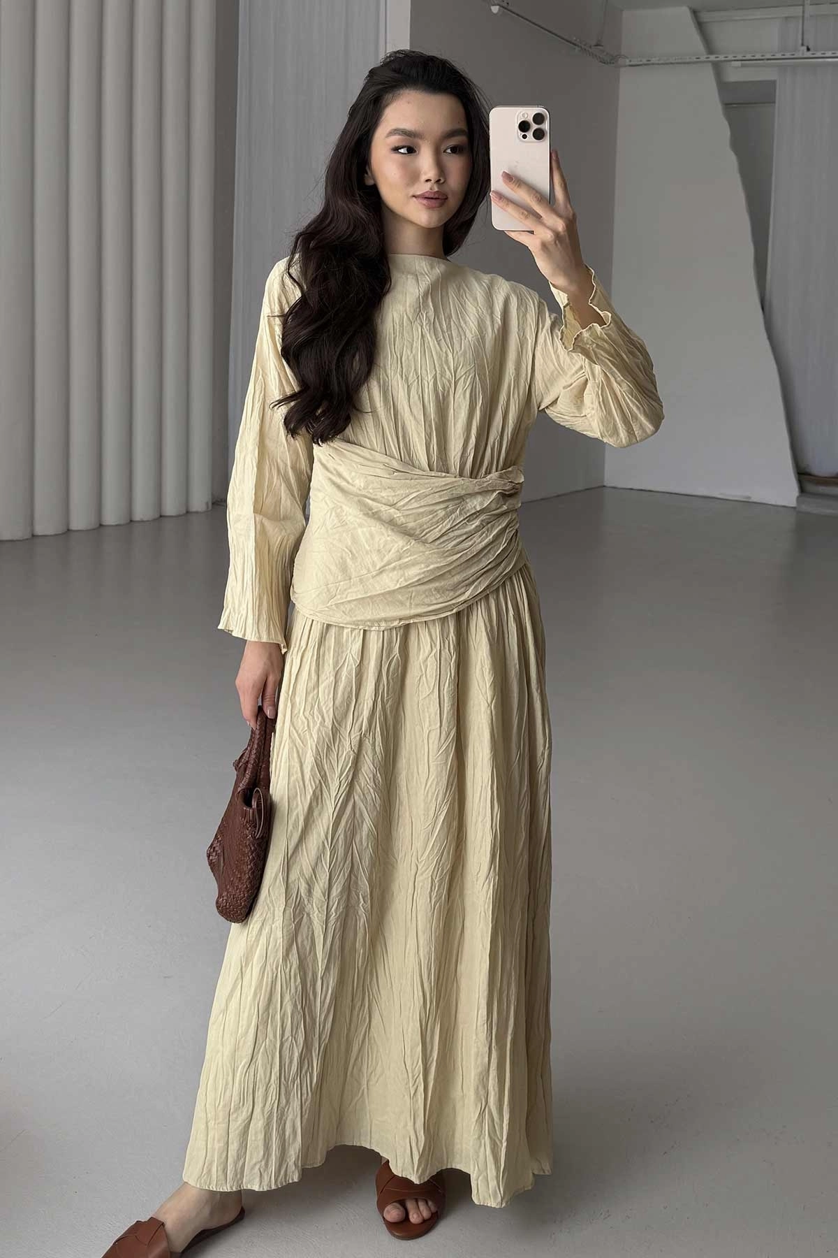 Kırışık Görünümlü Pamuklu Vual Butter Yellow Elbise