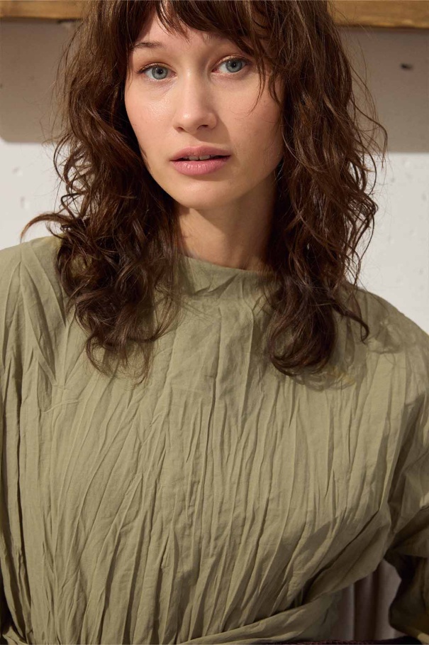 Kırışık Görünümlü Pamuklu Vual Haki Elbise