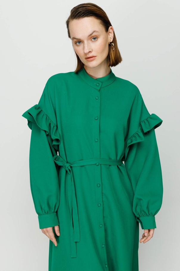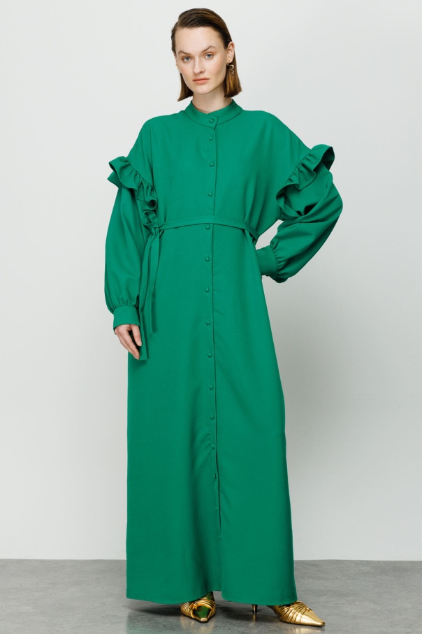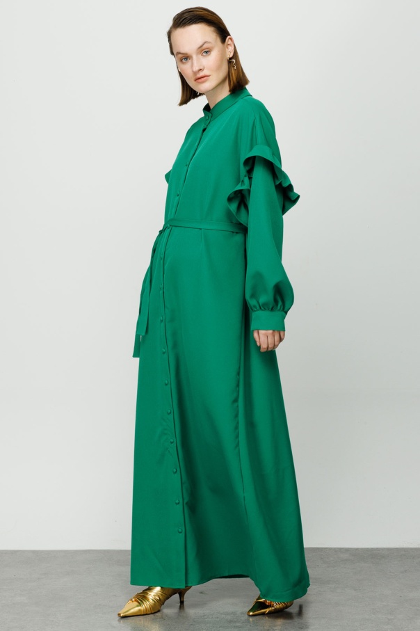 Kolları Fırfırlı Düğmeli Benetton Yeşili Elbise