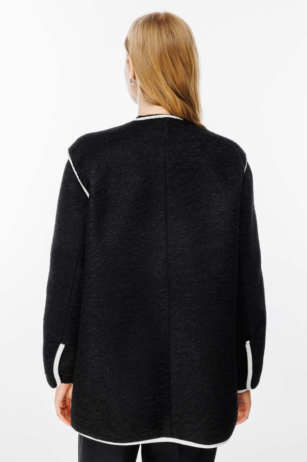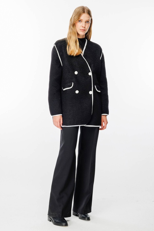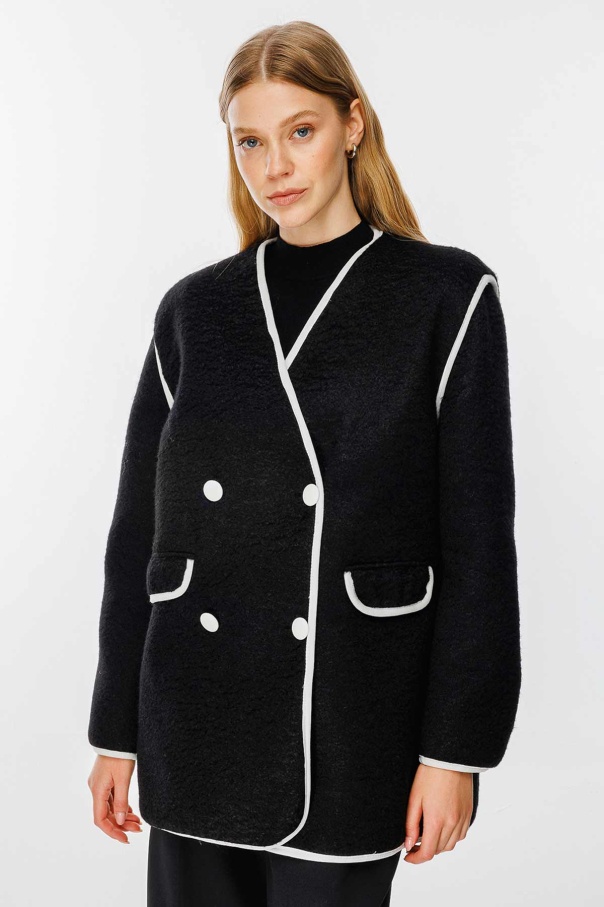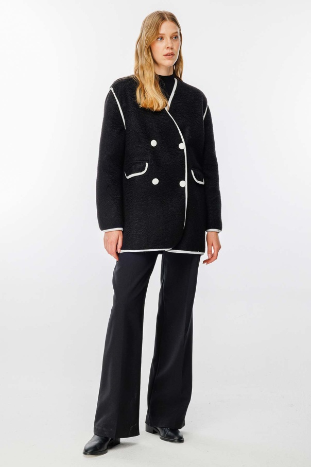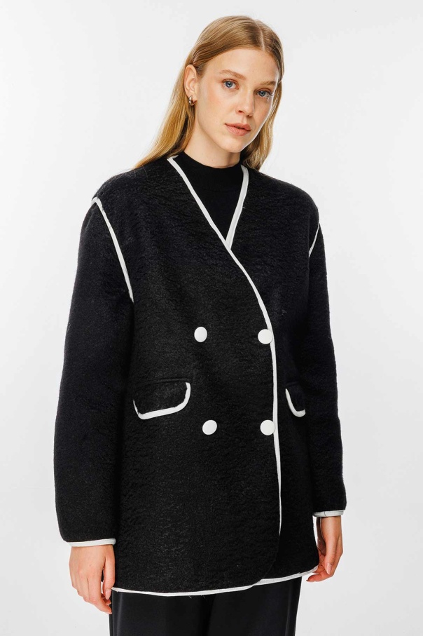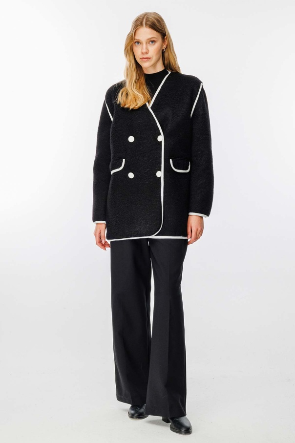 Kontrast Biye Detaylı Kaşe Siyah Blazer Ceket