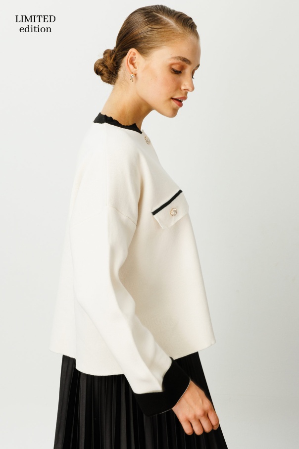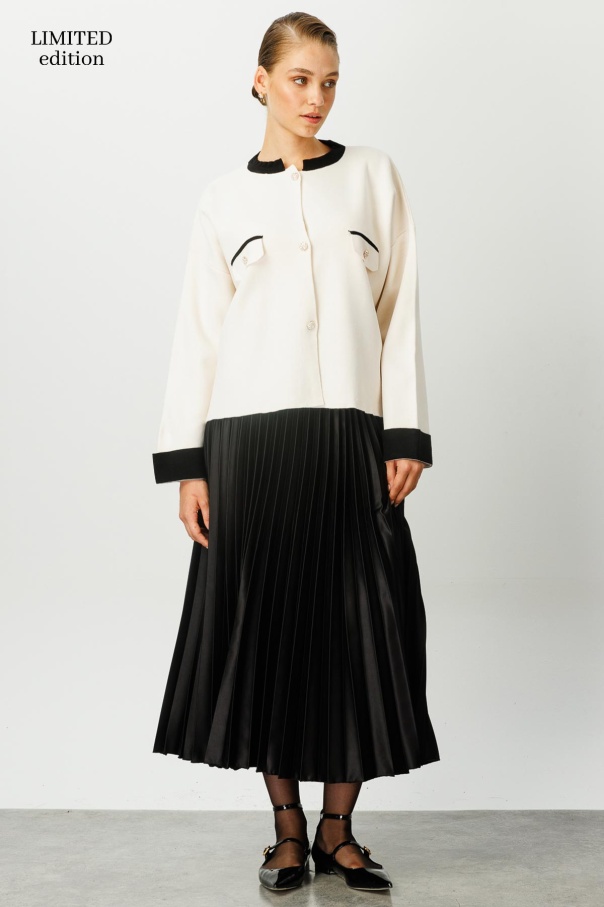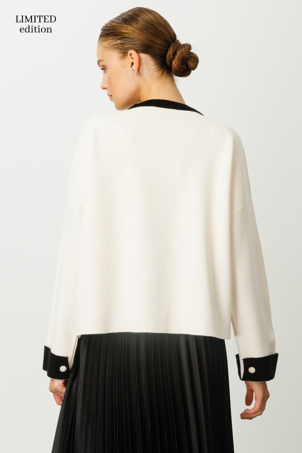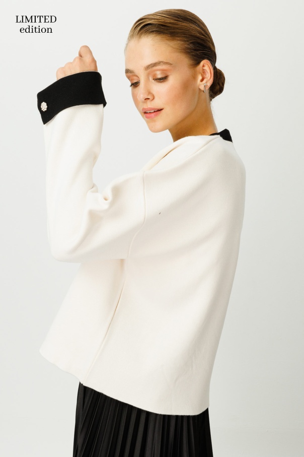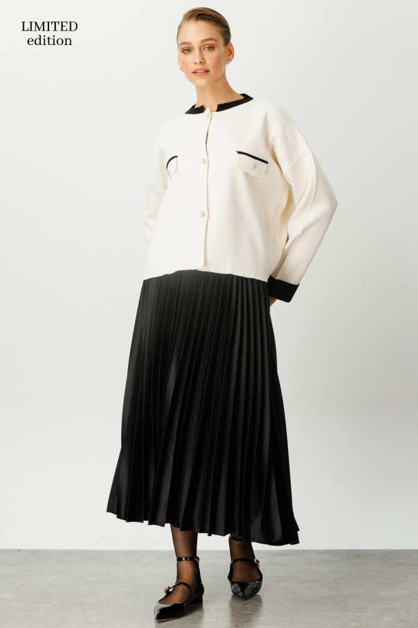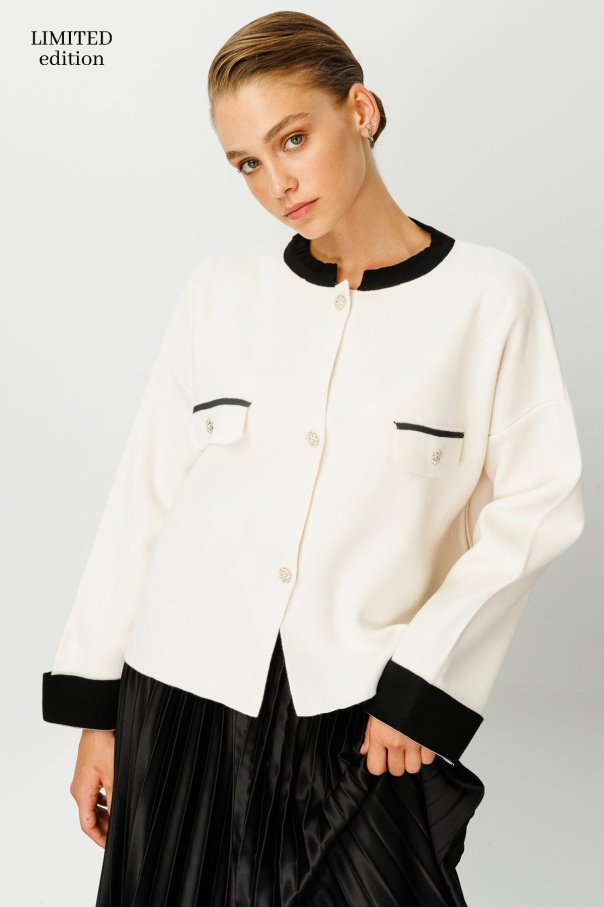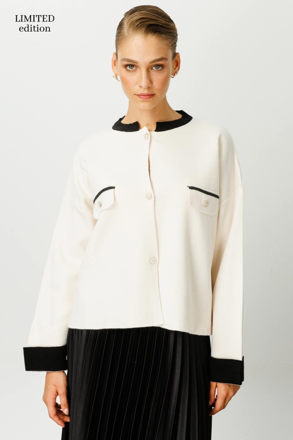 Kontrast Şerit Detaylı Triko Ceket - Krem
