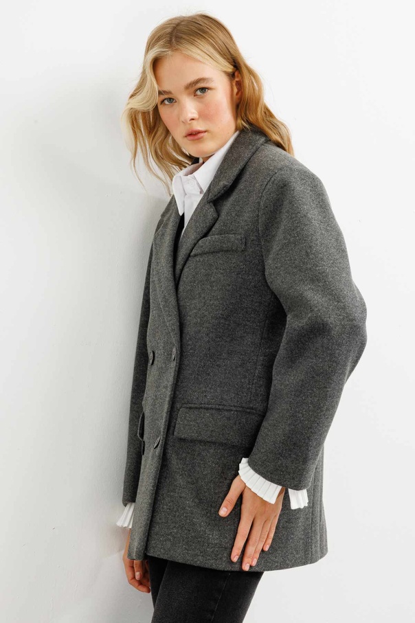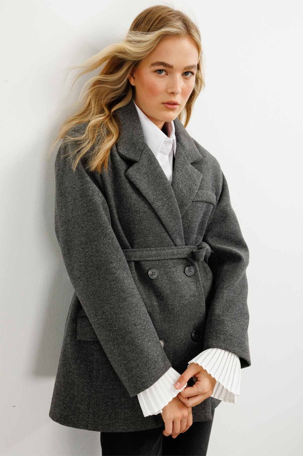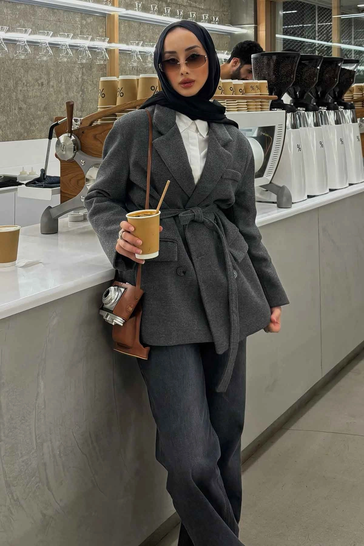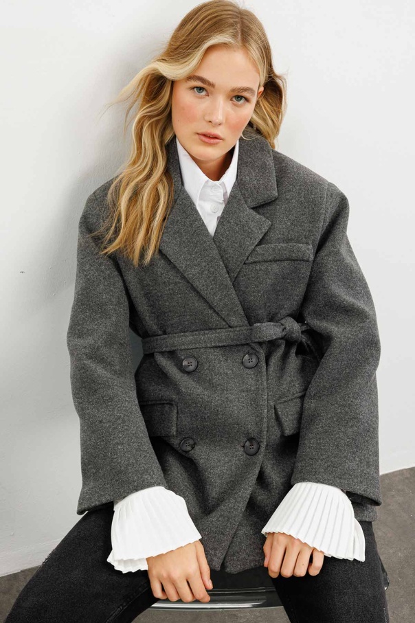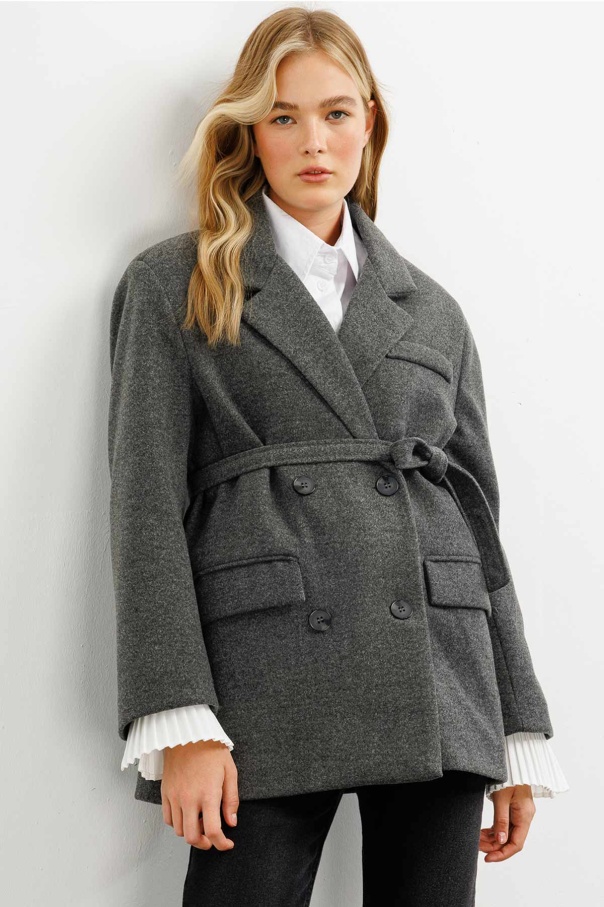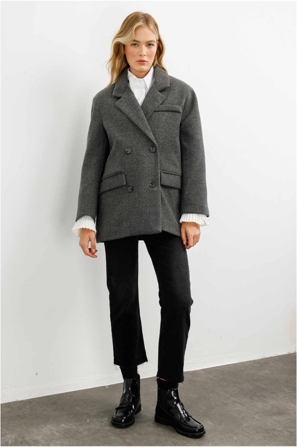 Kruvaze Kapamalı Kaşe Antrasit Blazer Ceket