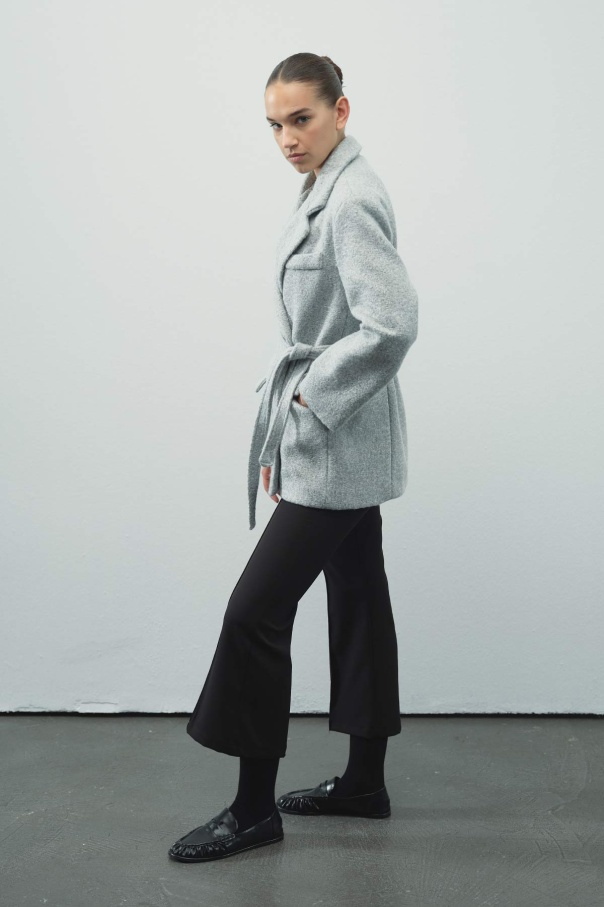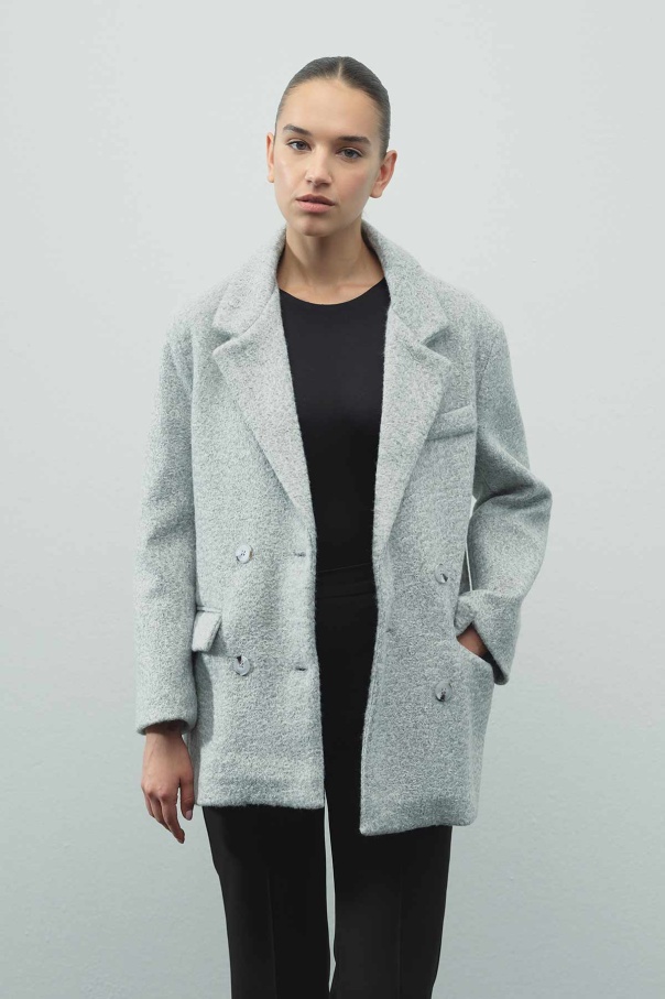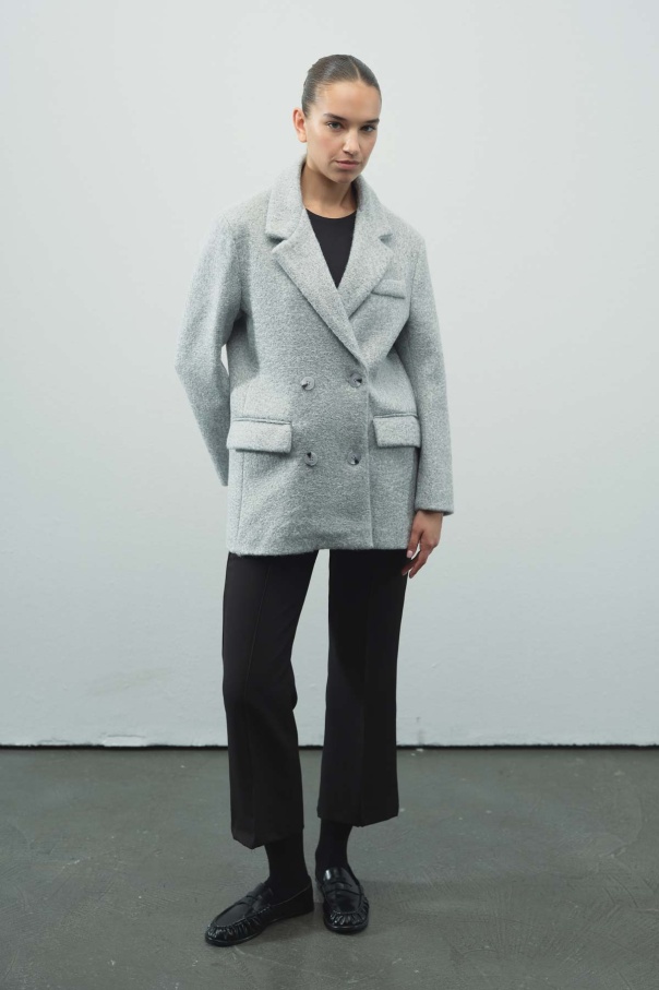 Kruvaze Kapamalı Kaşe Blazer Gri Ceket