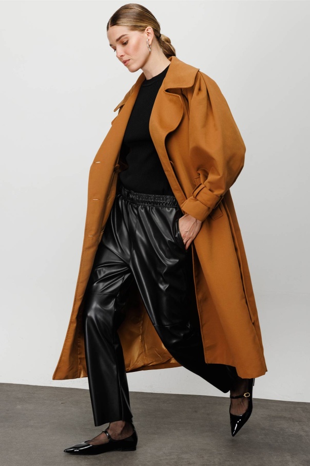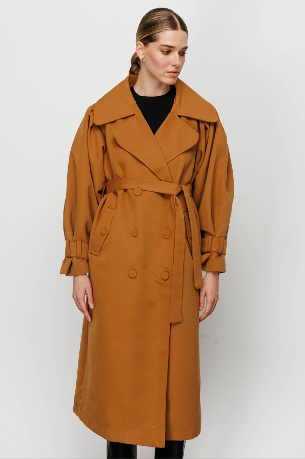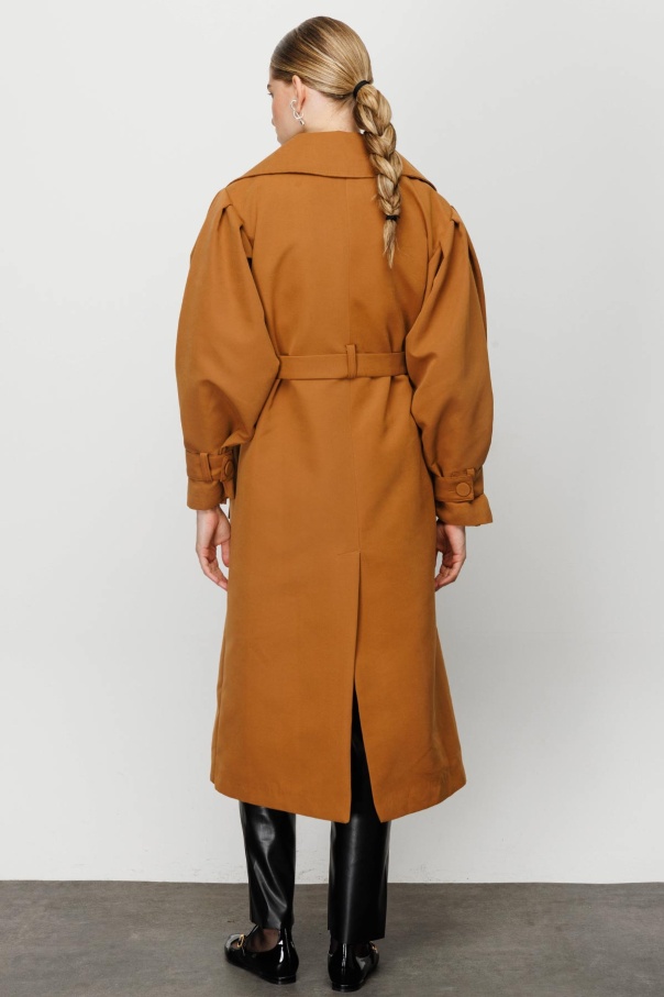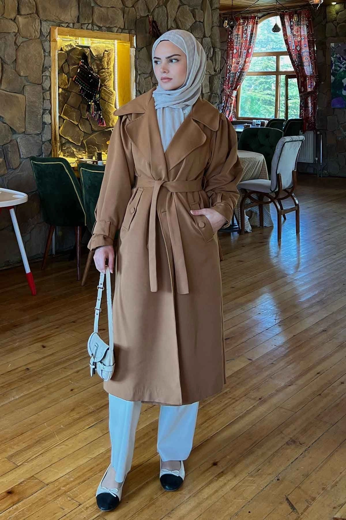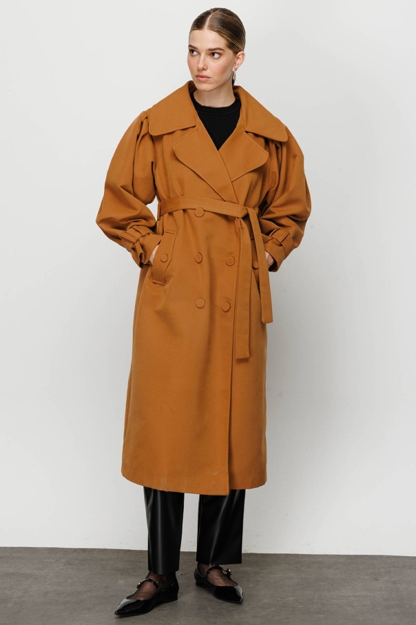 Kruvaze Kaplama Düğmeli Kahve Trençkot