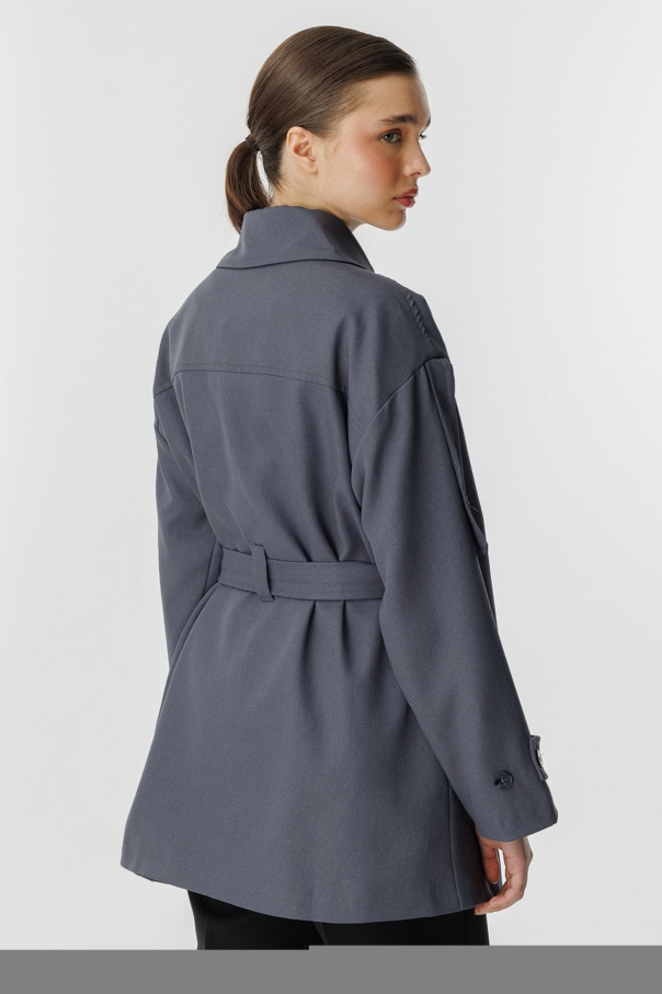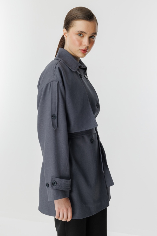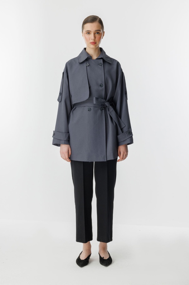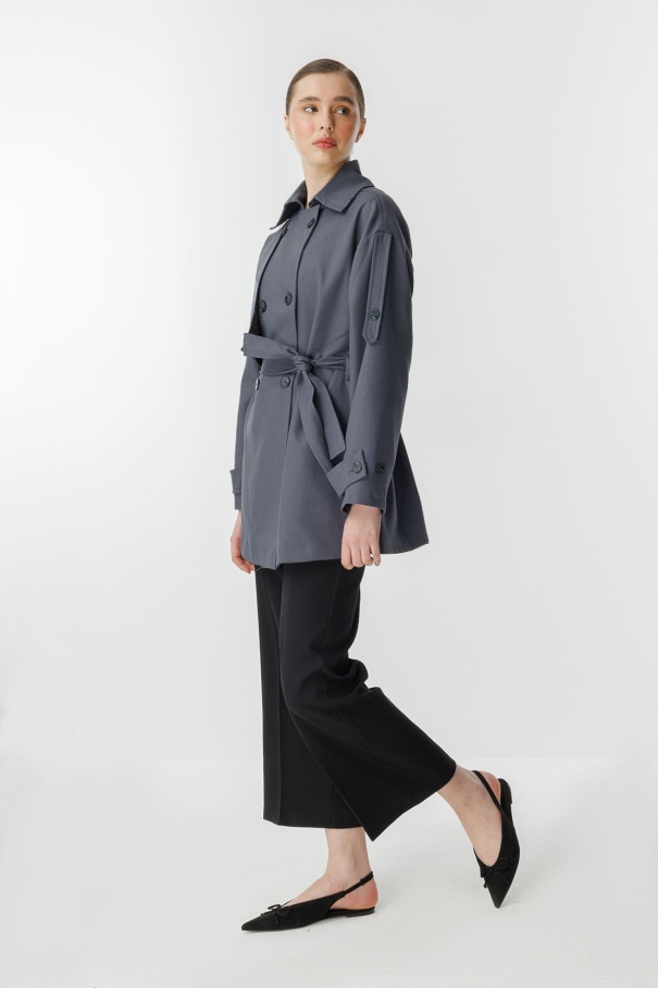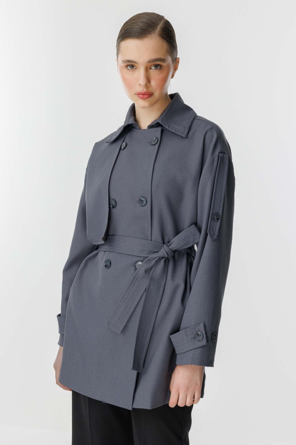 Kruvaze Oversize Kısa Antrasit Trençkot