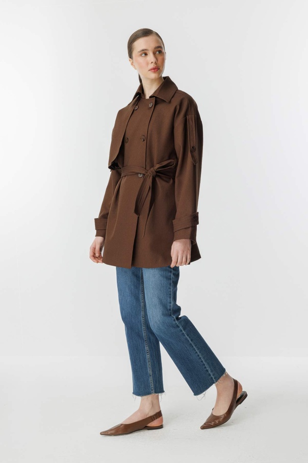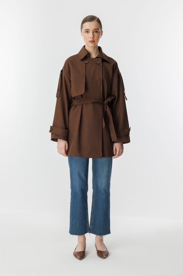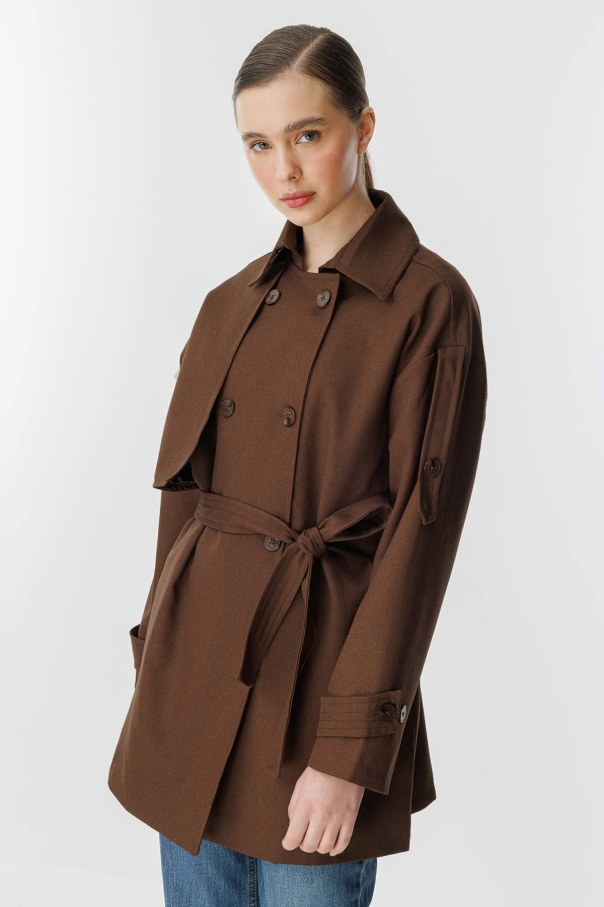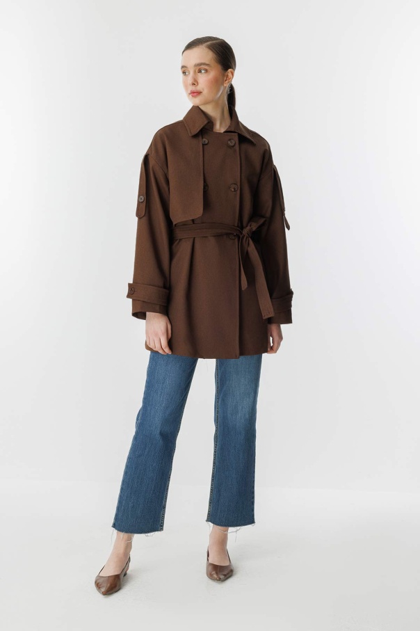 Kruvaze Oversize Kısa Kahve Trençkot