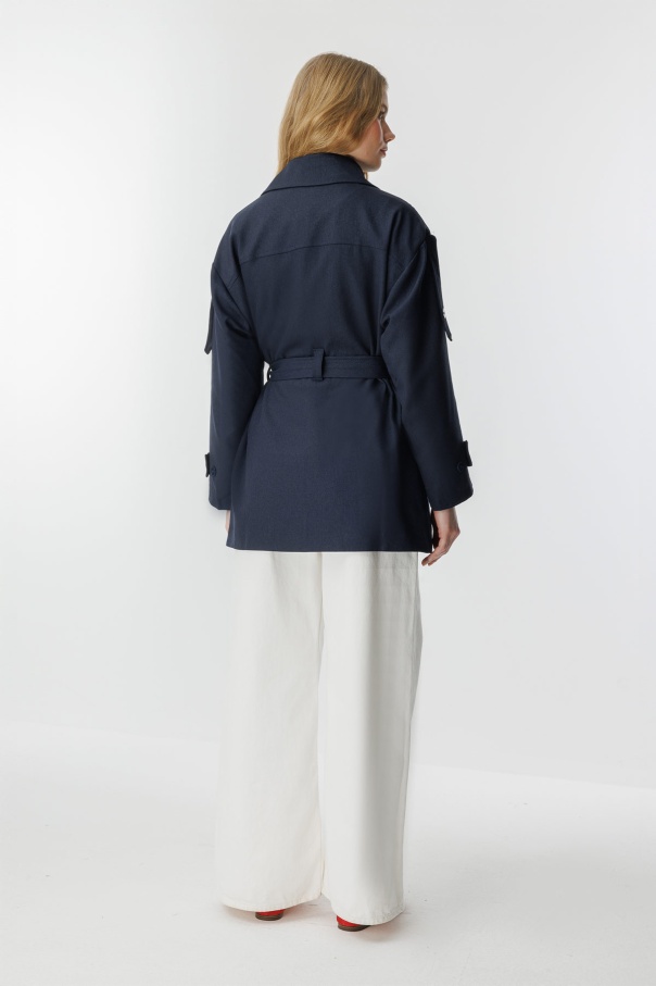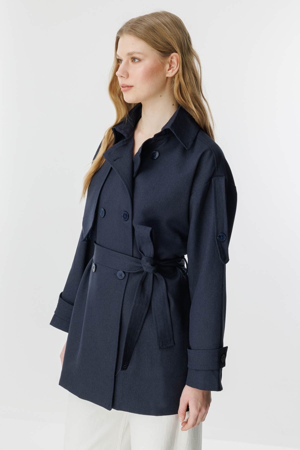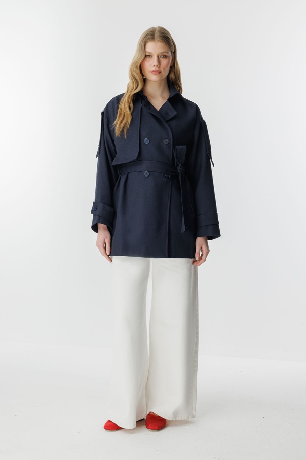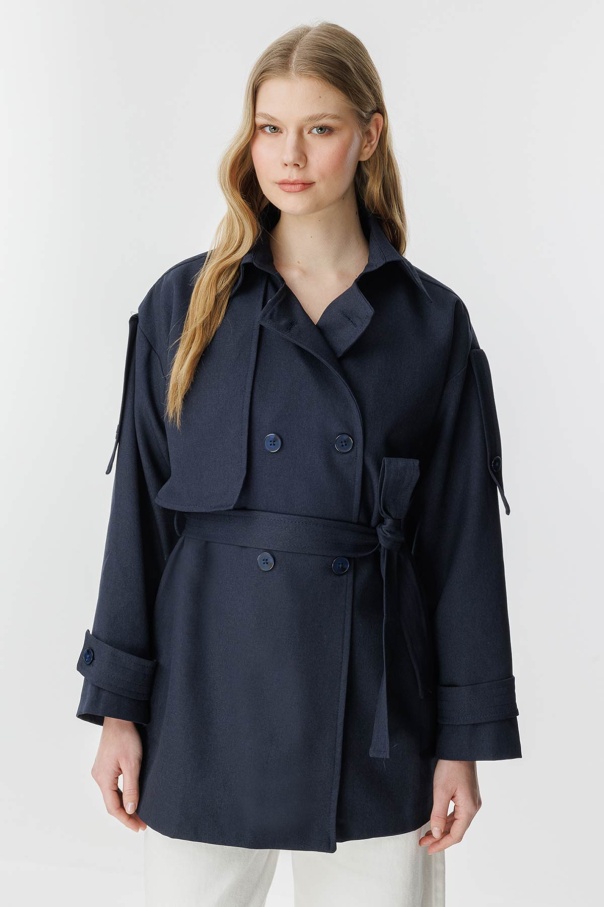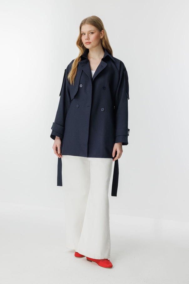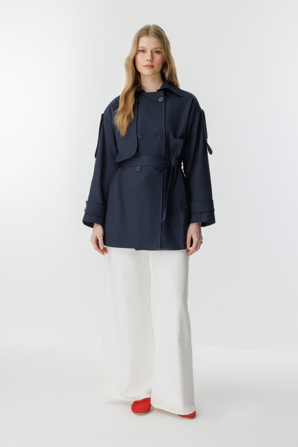 Kruvaze Oversize Kısa Lacivert Trençkot