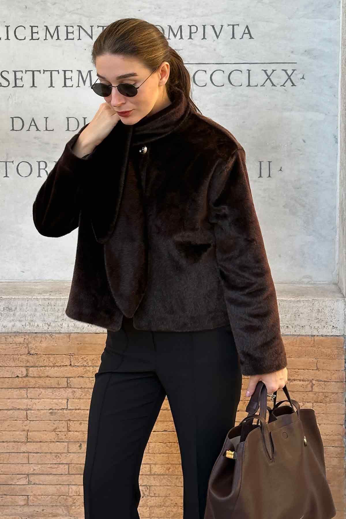 Fular Bağlama Detaylı Kısa Kahve Ceket