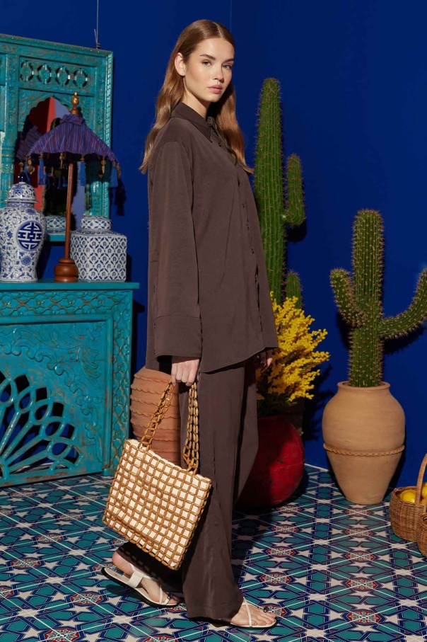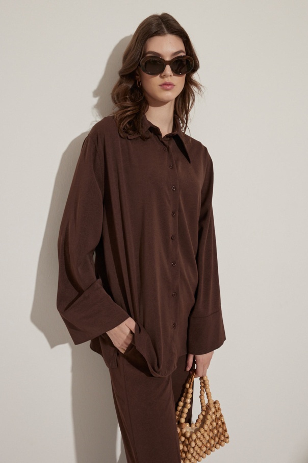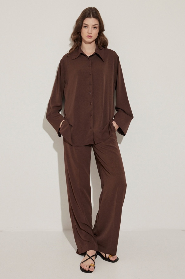 Kraş Dokulu Kahve Pantolon Takım