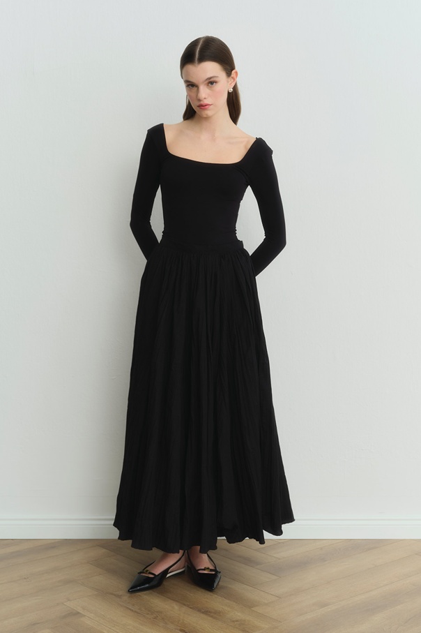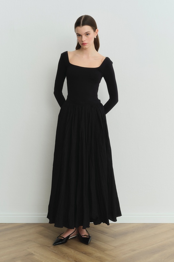 Long Pilise Siyah Etek