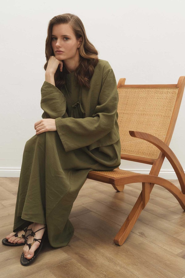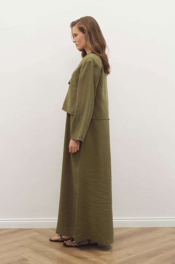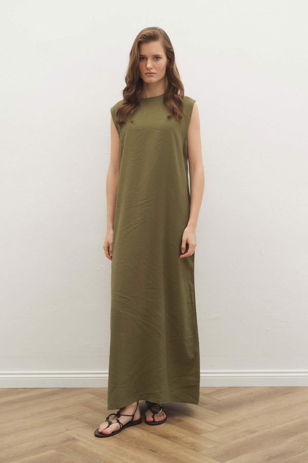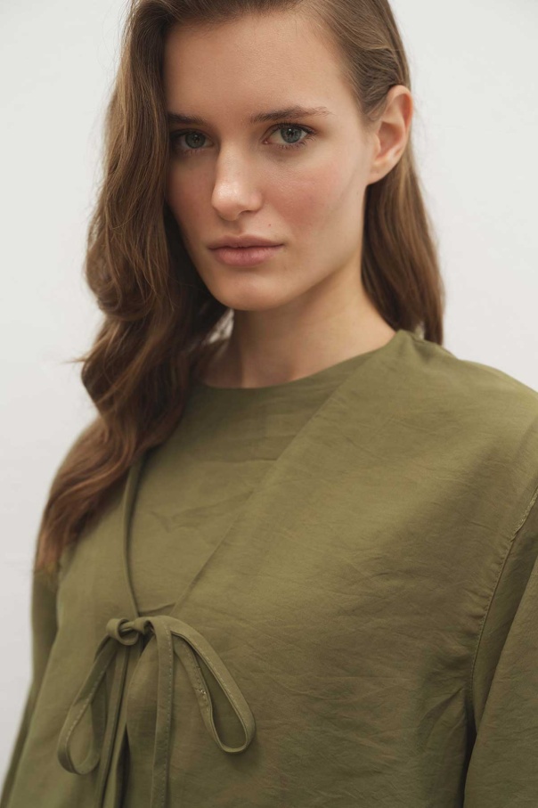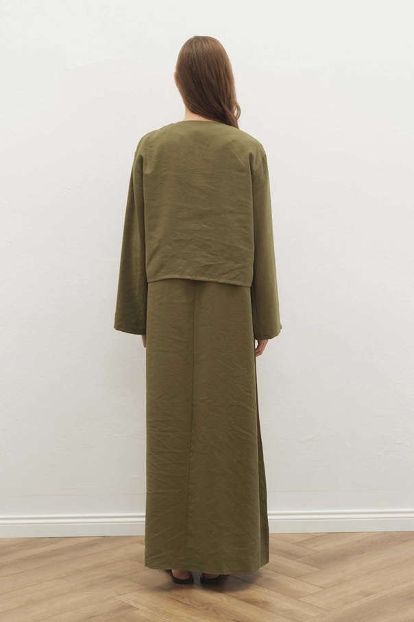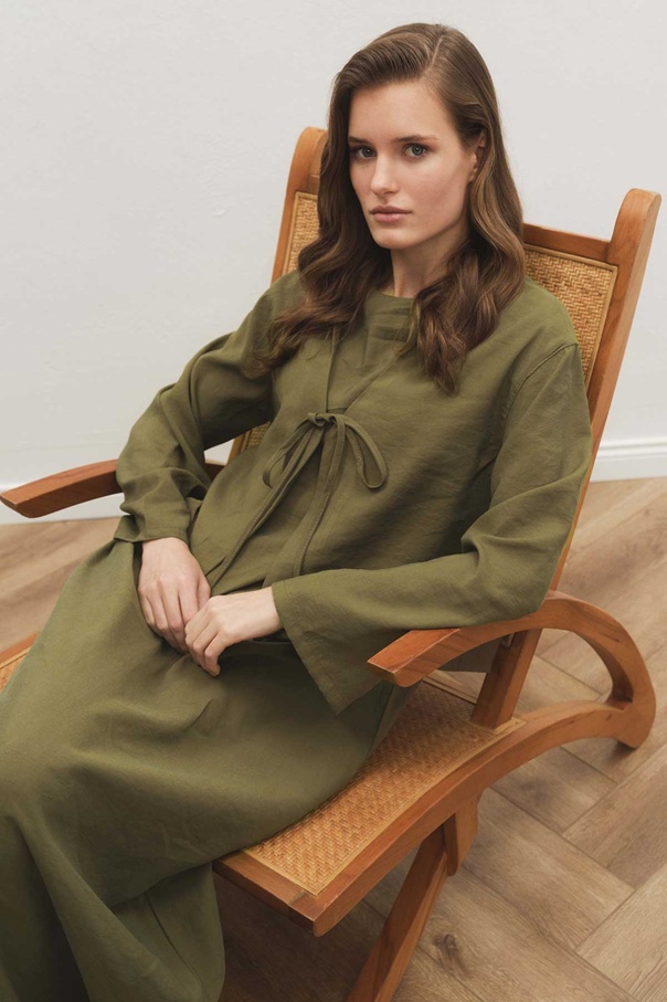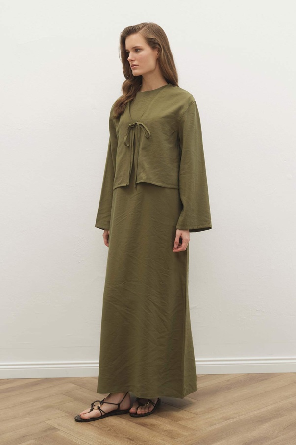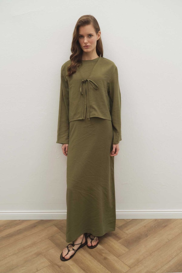 Bağlama Detaylı Modal Kumaş Haki Elbise