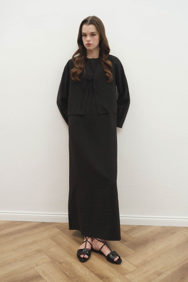 Bağlama Detaylı Modal Kumaş Siyah Elbise