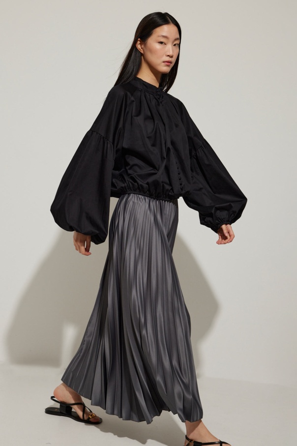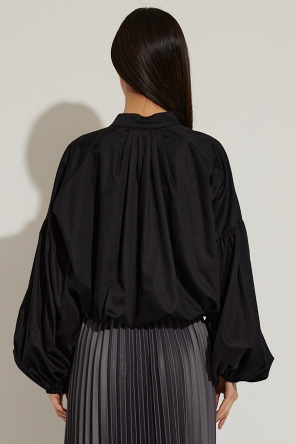Önden Düğmeli Siyah Crop Poplin Gömlek