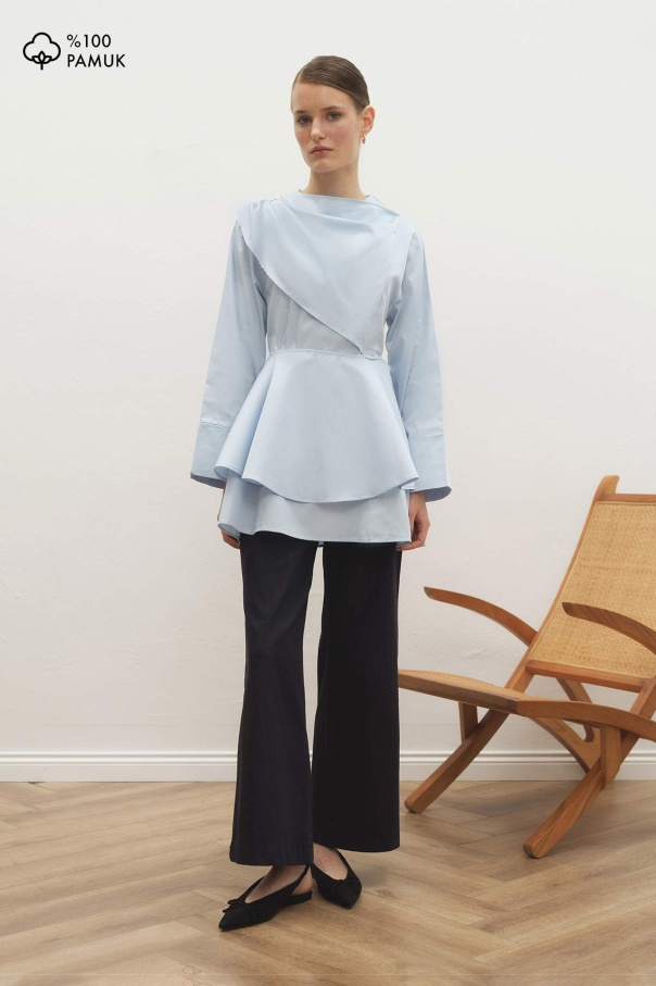 Love Pelerin Detaylı Gök Mavi Gömlek