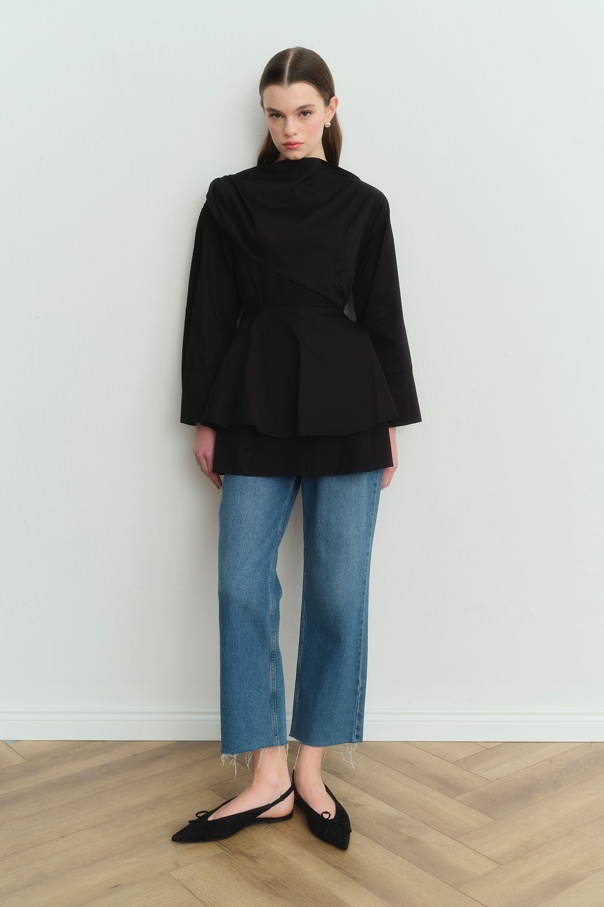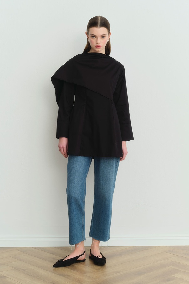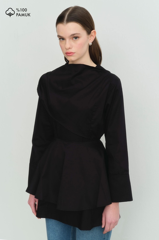 Love Pelerin Detaylı Siyah Gömlek