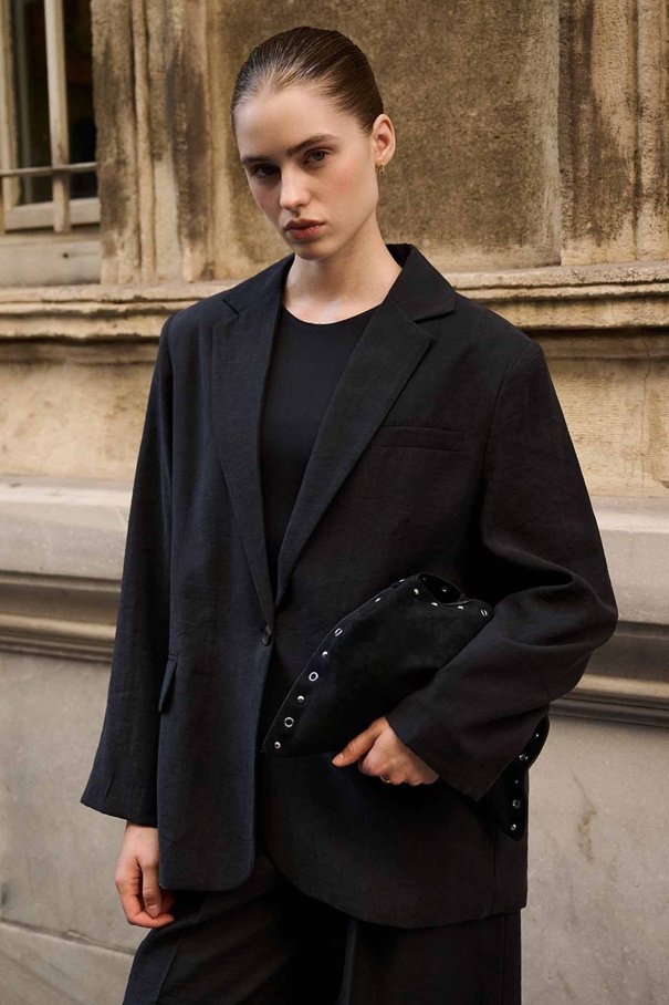 Lyocell Cupra Blazer Siyah Ceket