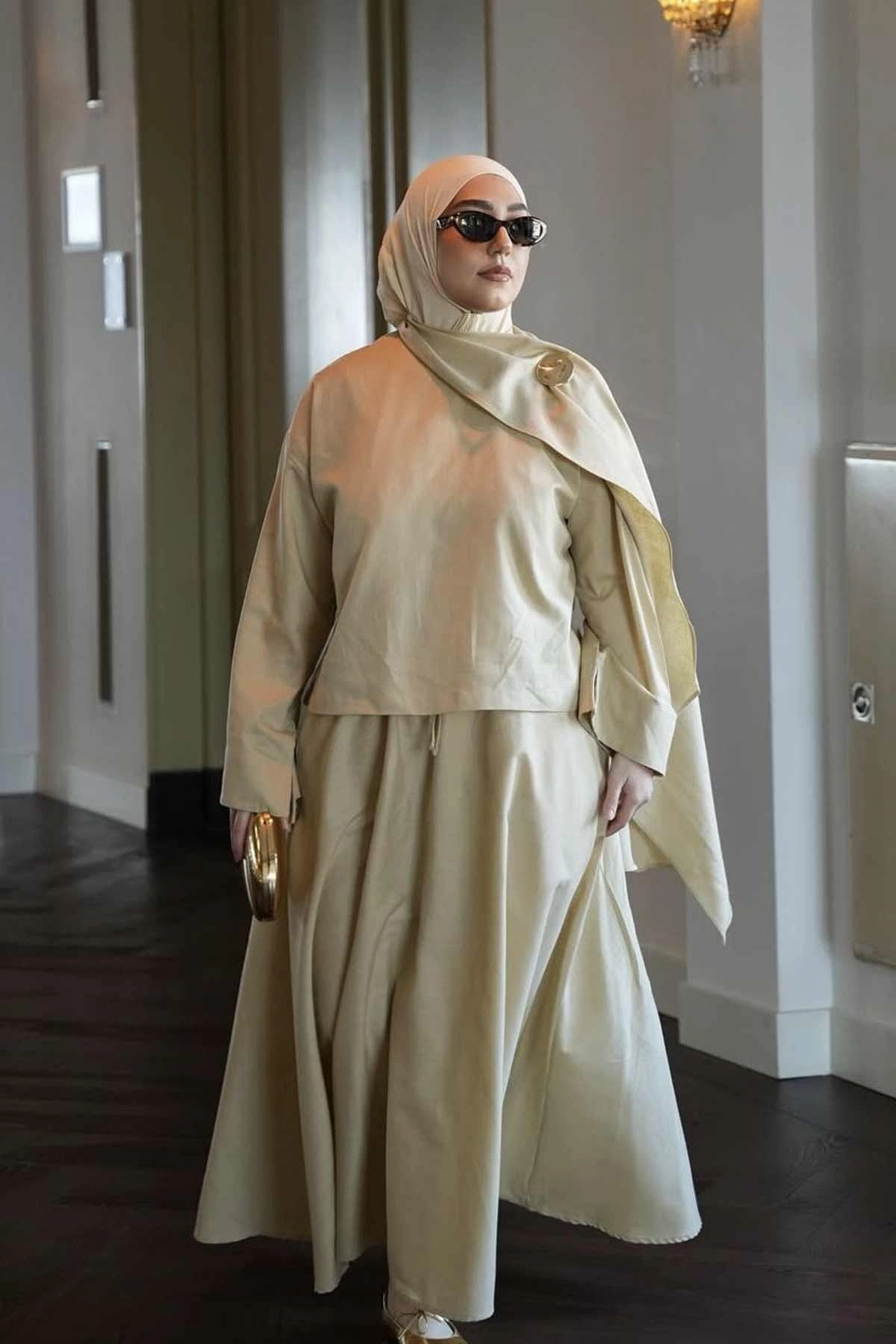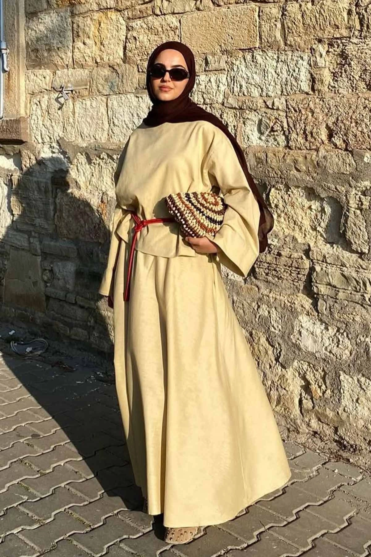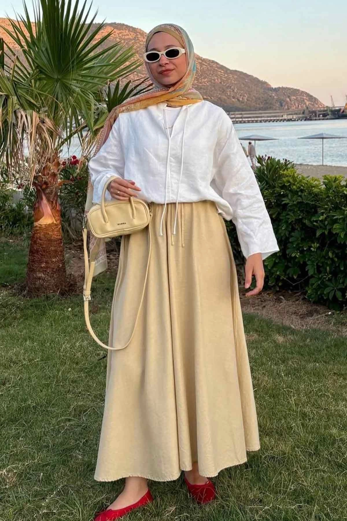 Lyocell Keten Belden Lastikli Kum Beji Etek