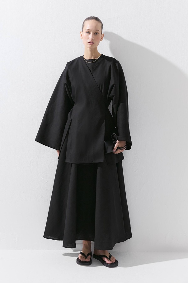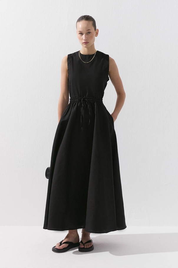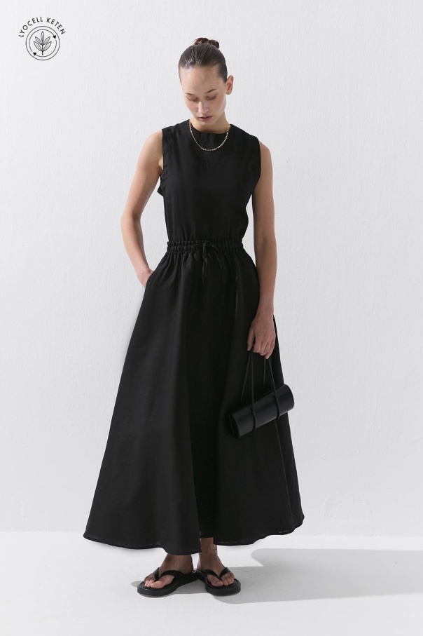 Lyocell Keten Belden Lastikli Siyah Etek