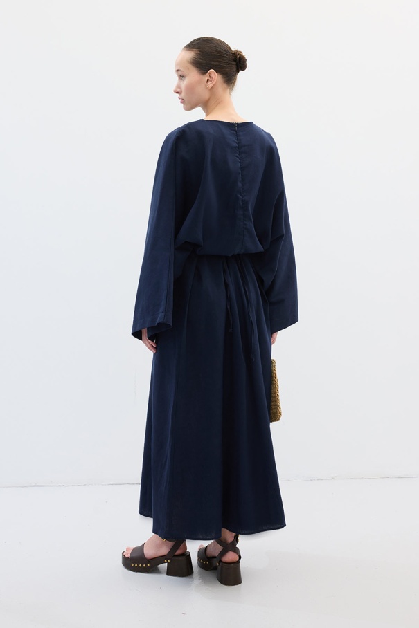 Lyocell Keten Dökümlü Lacivert Tunik Elbise