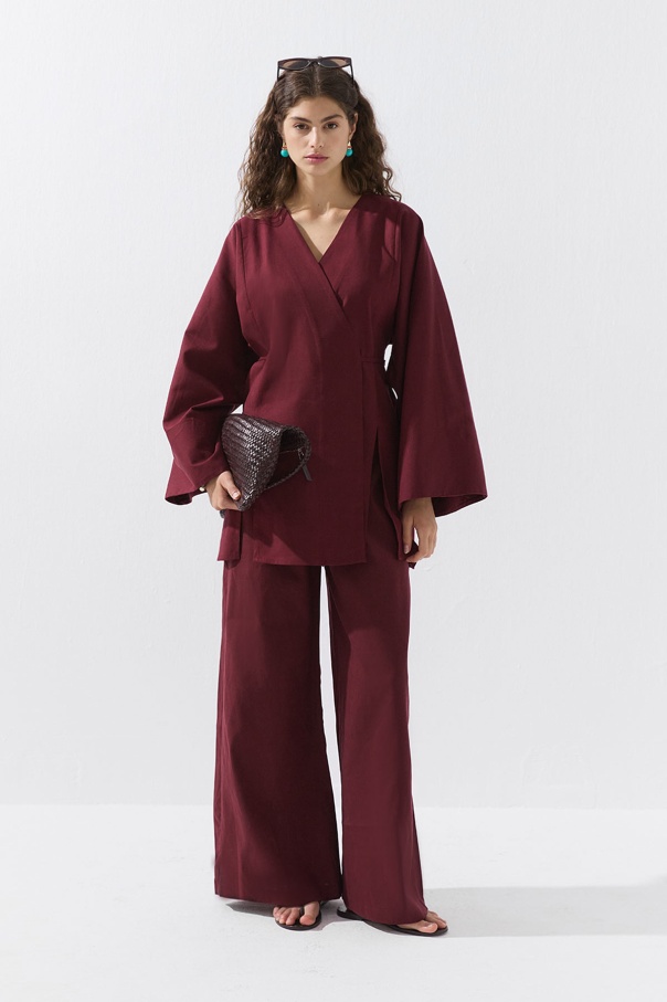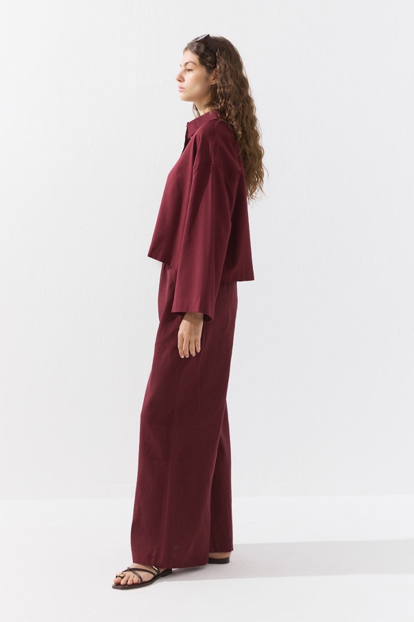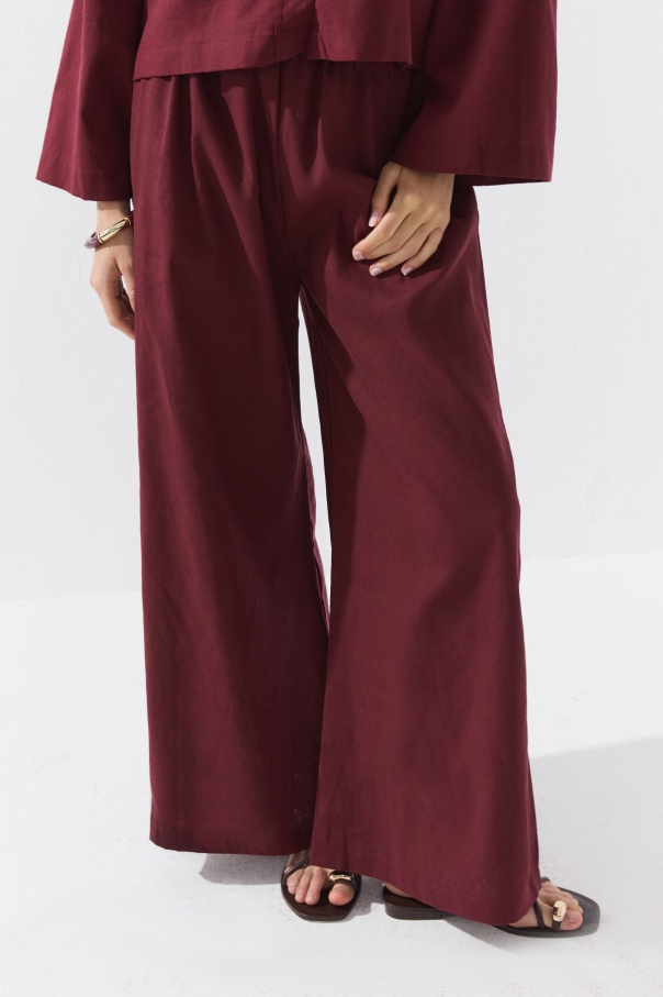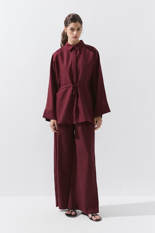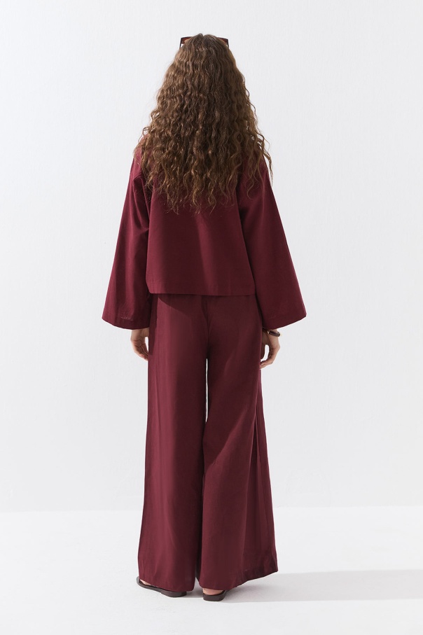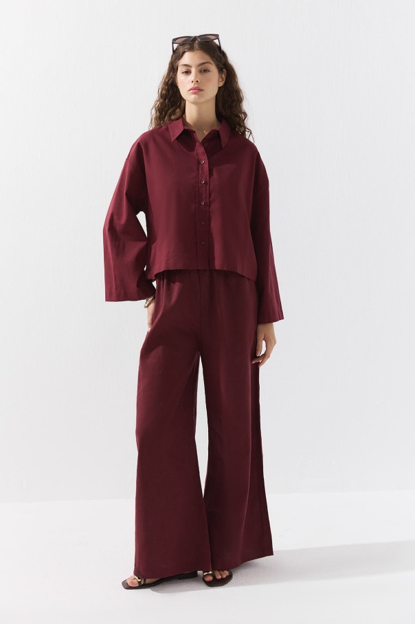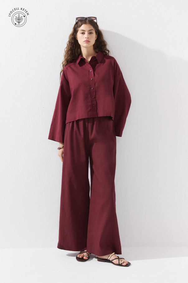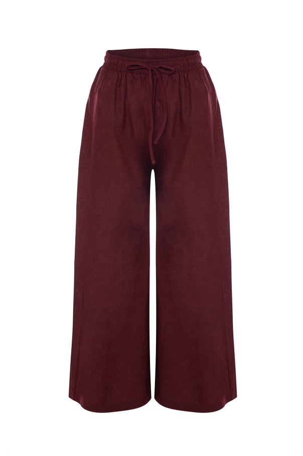 Lyocell Keten Dökümlü Lastikli Bordo Pantolon