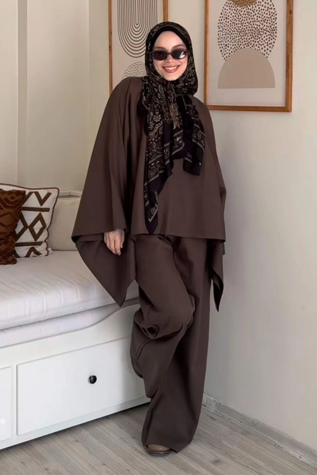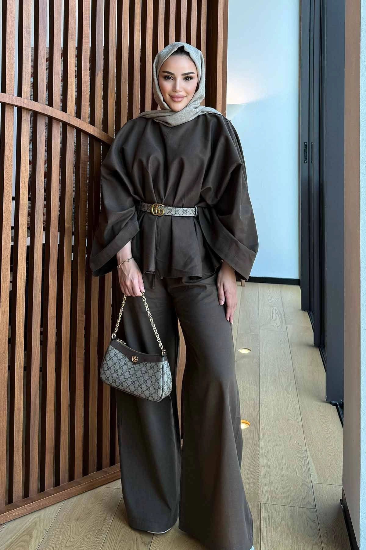 Lyocell Keten Pelerin Kül Kahve Bluz