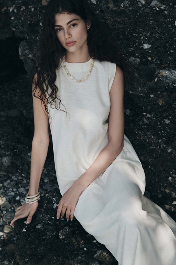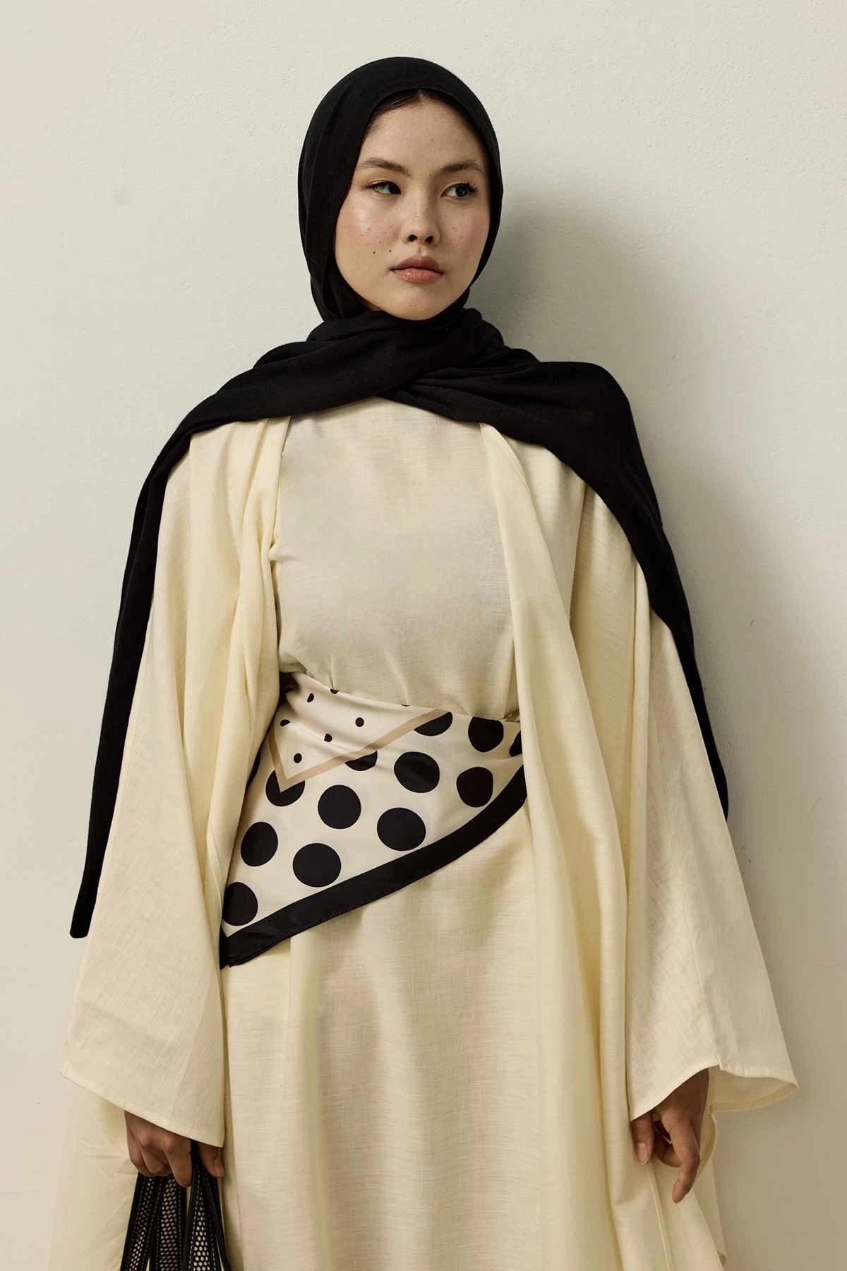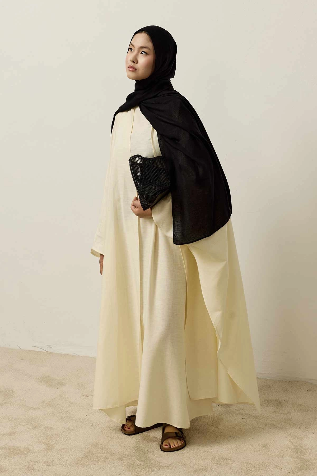 Lyocell Keten Sıfır Kol Ekru Elbise