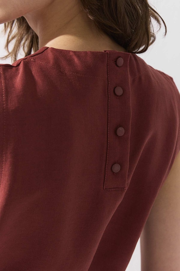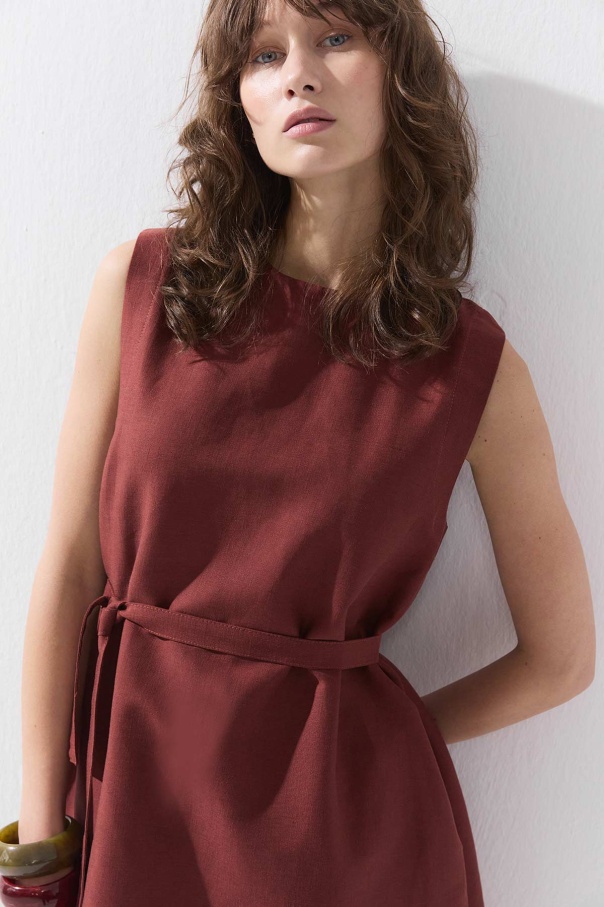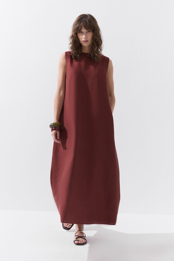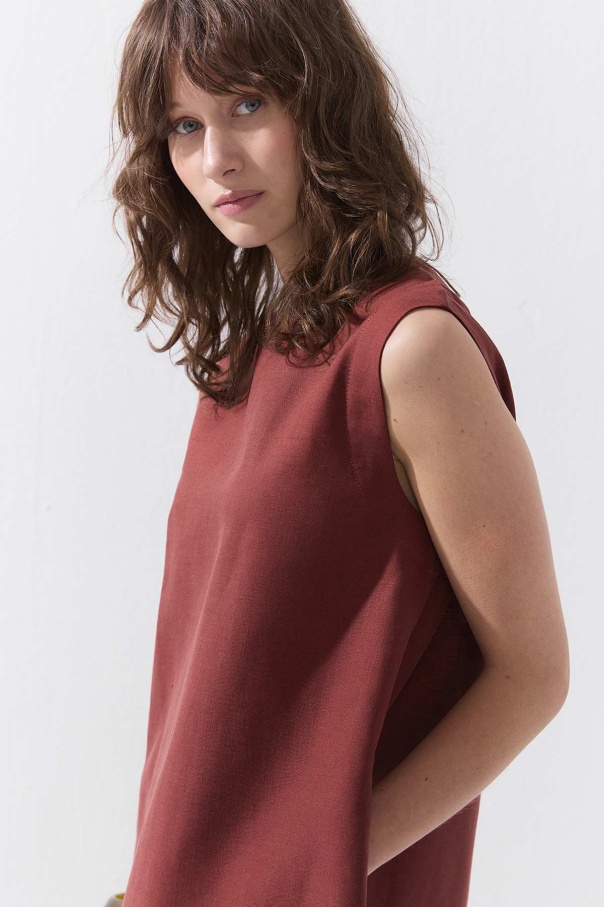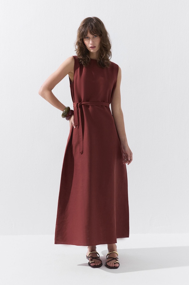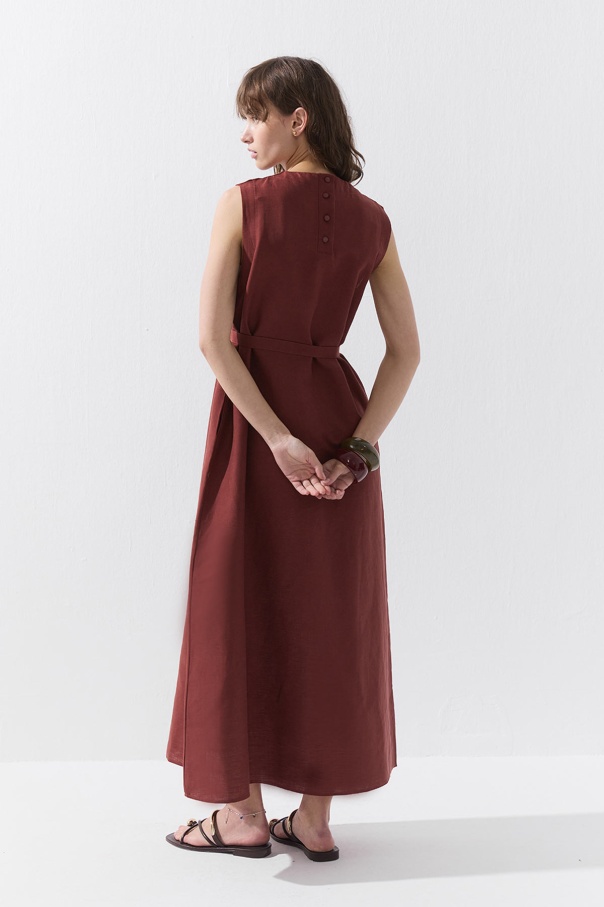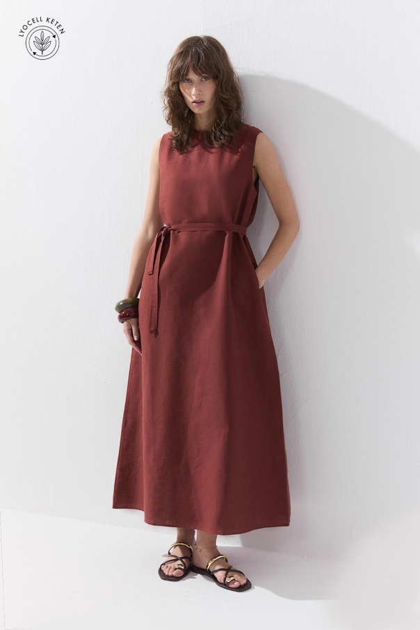 Lyocell Keten Sıfır Kol Mercan Elbise