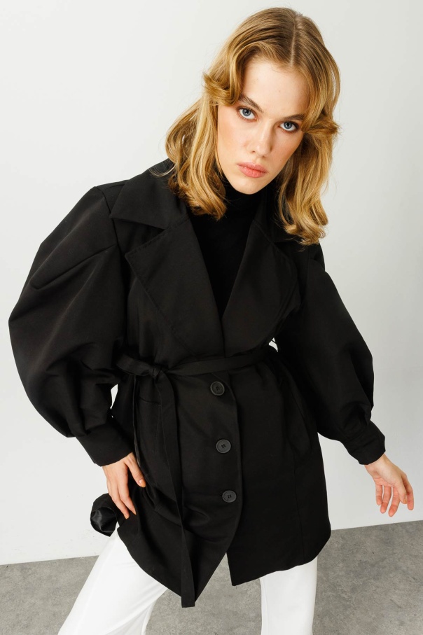 Marsilya Kısa Siyah Trençkot