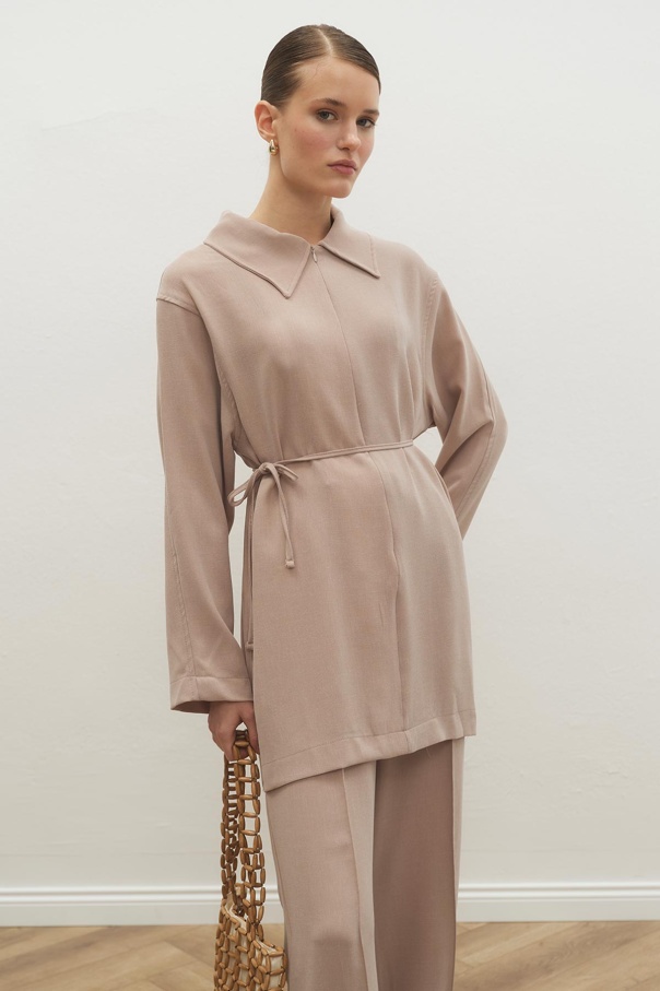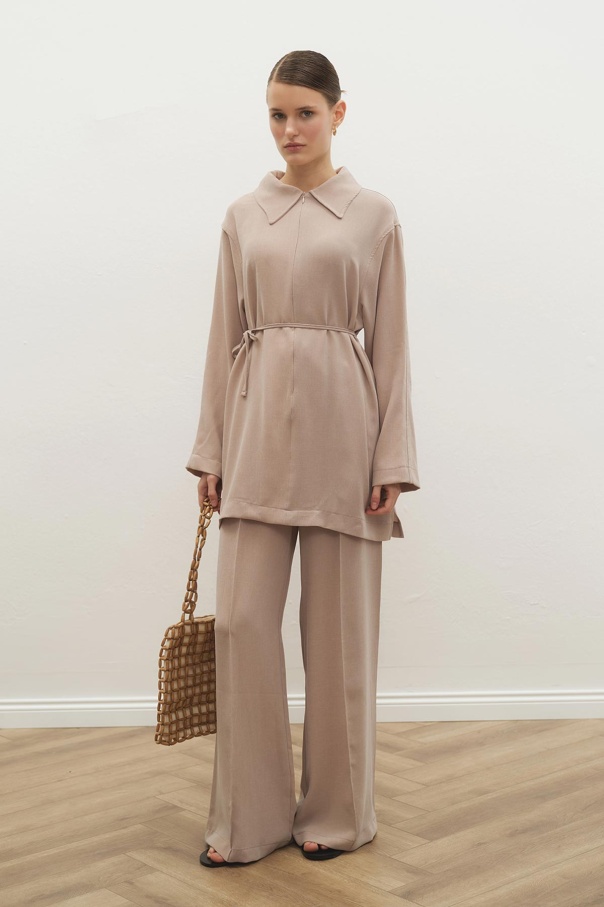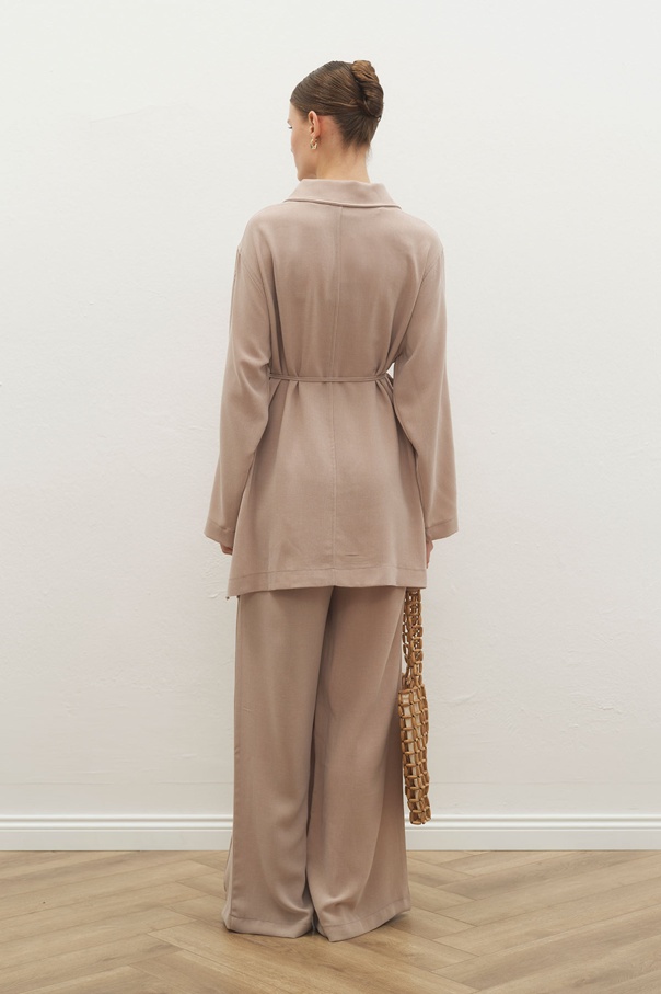 Melanj Dokulu Glide Bej Pantolon Takım